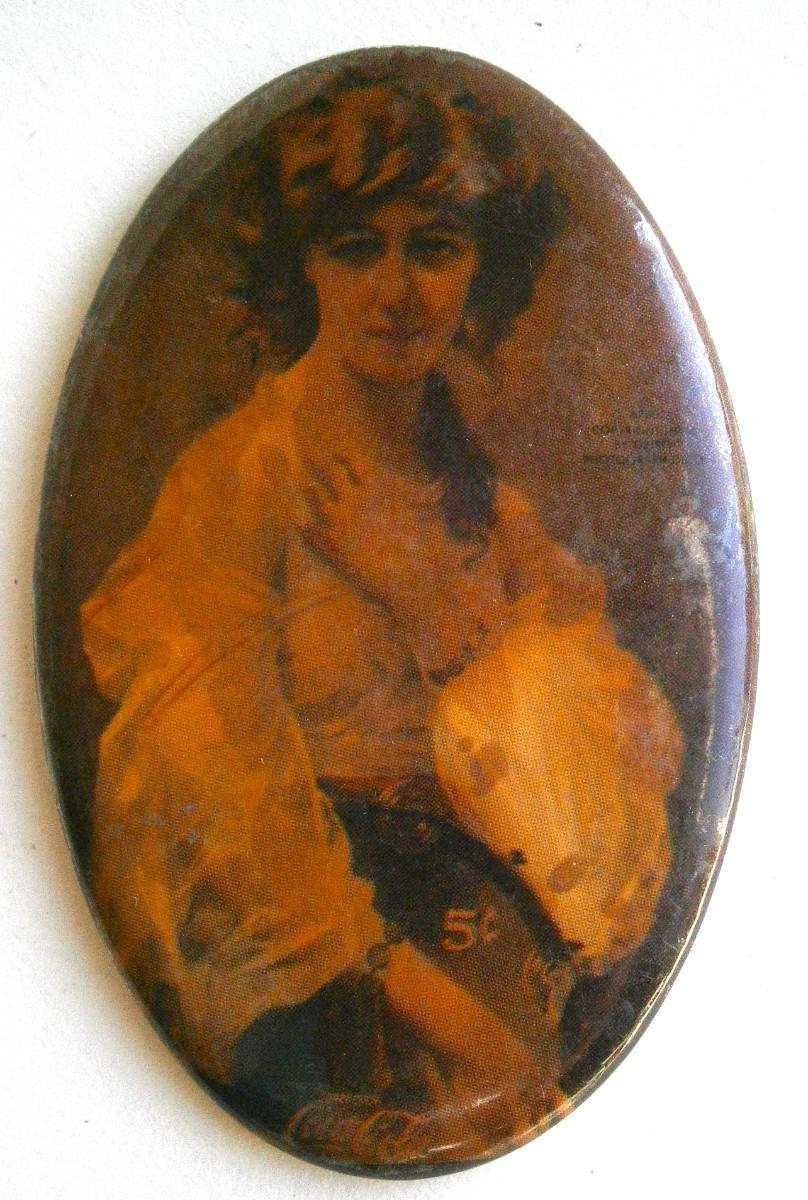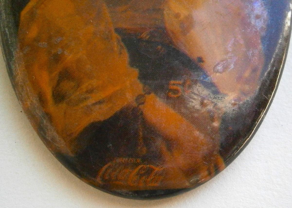 1950's Coca-Cola Advertising Pocket Mirror, 2 3/4 in. tall, celluloid over tin.