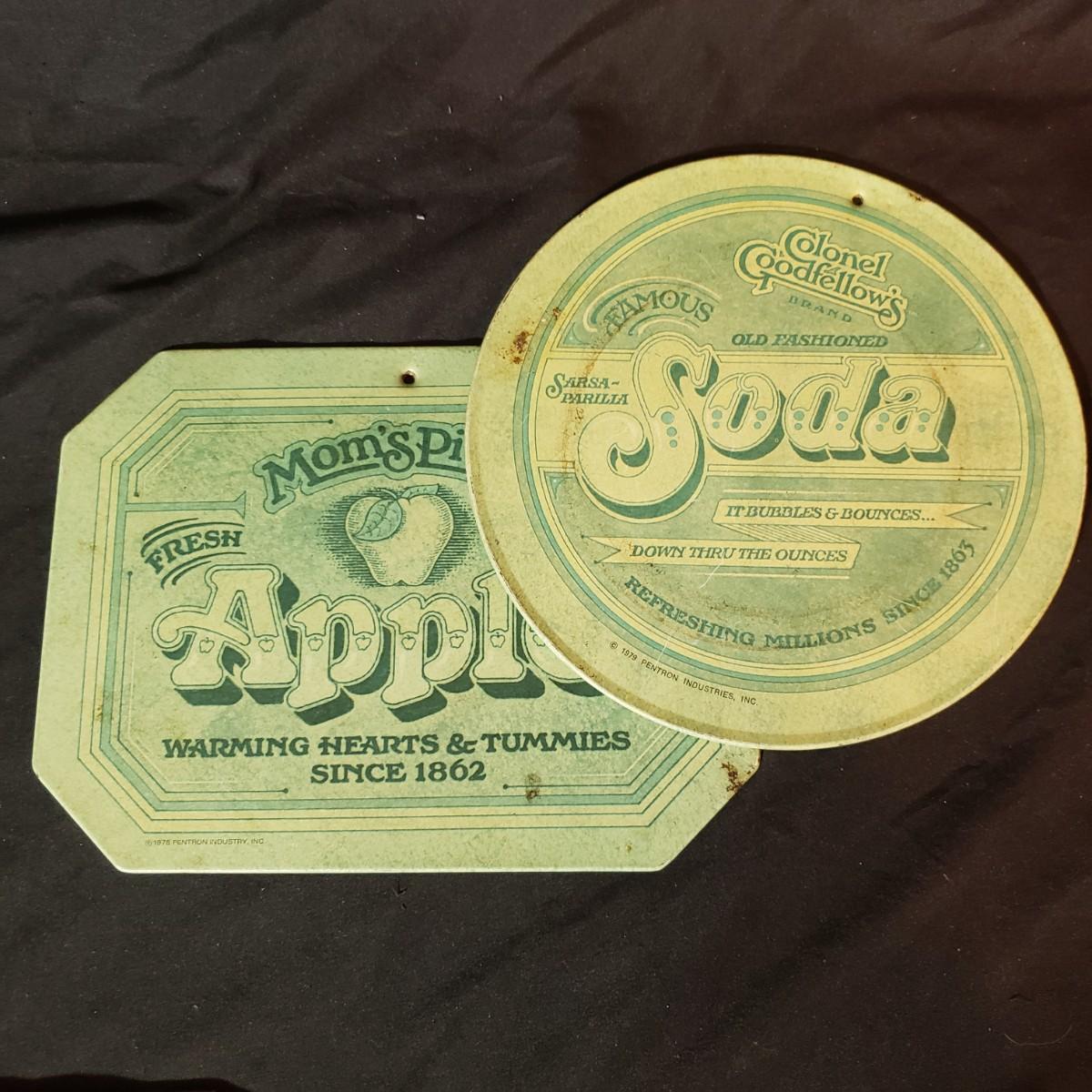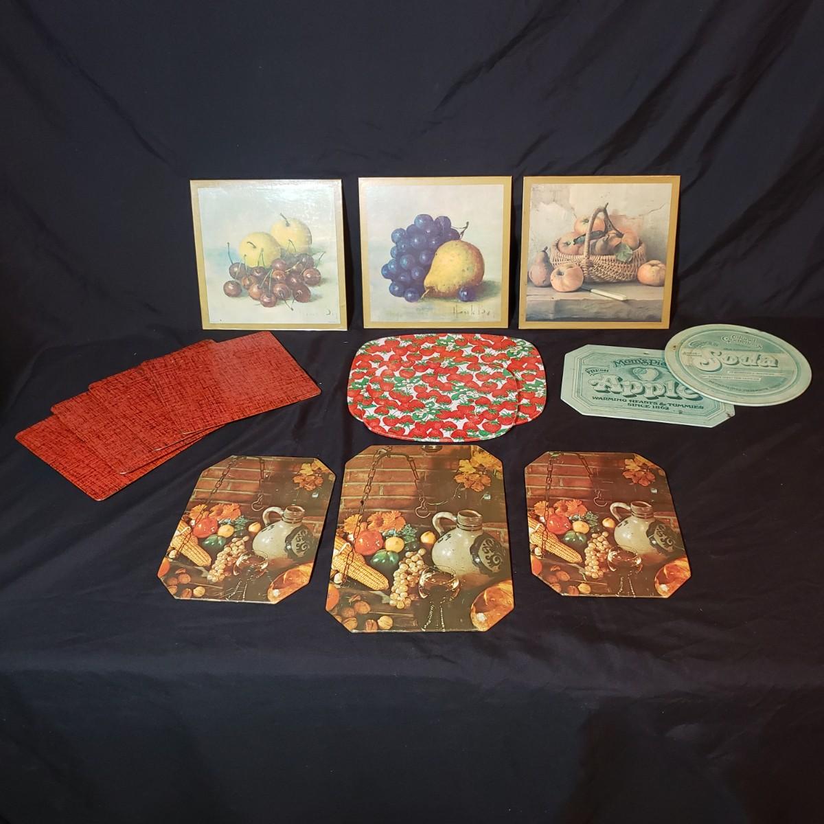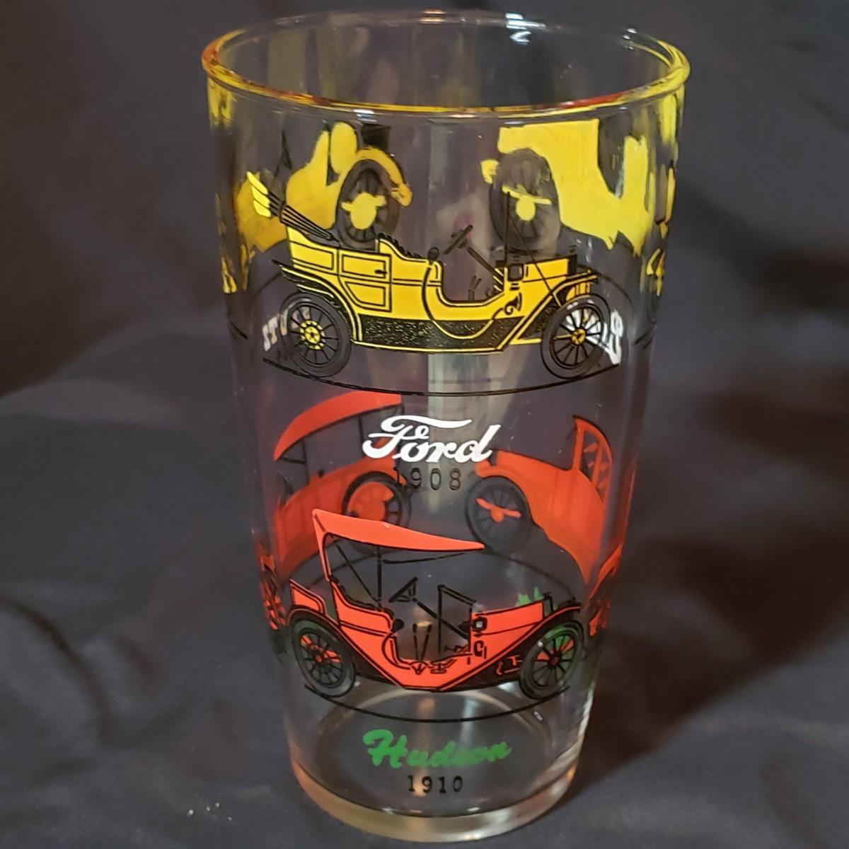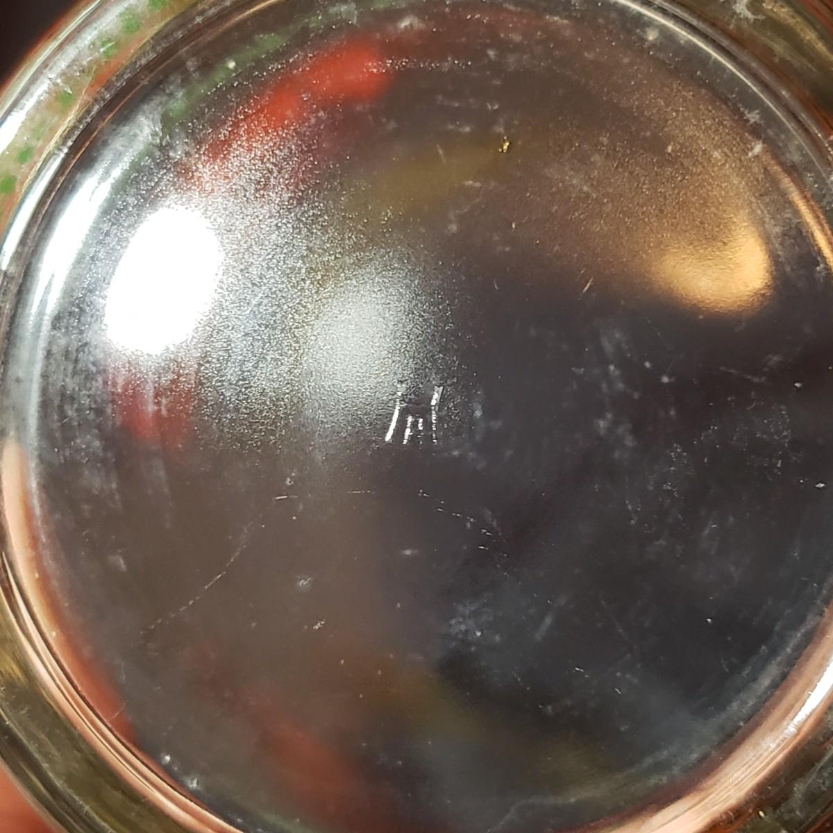 Such nostalgia in this lot! Featured in this lot are a set of three Pyrex canisters with a brown/orange plastic lid. The set can stack! The largest measures 6" x 8"H. The two Cooking Magic books are a conglomerate of little books bound in a binder. There are some classic recipes in there! The four clear jars with red lids all have an anchor stamp on the bottom. The large car glass is a Hazel Atlas collector cup. The four Pyrex pie dishes feature an older style handle.