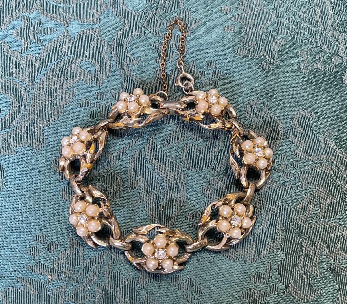 1950s Coro Bracelet Rhinestones and Faux Pearls