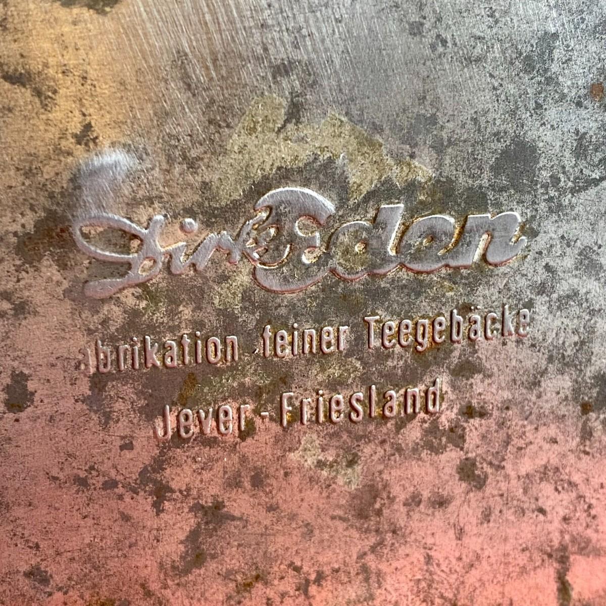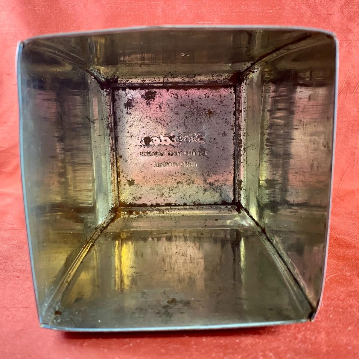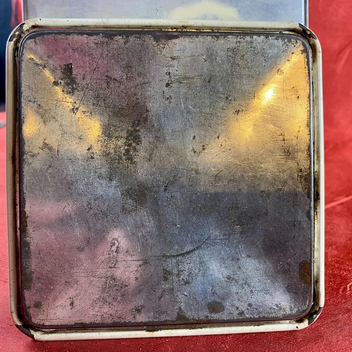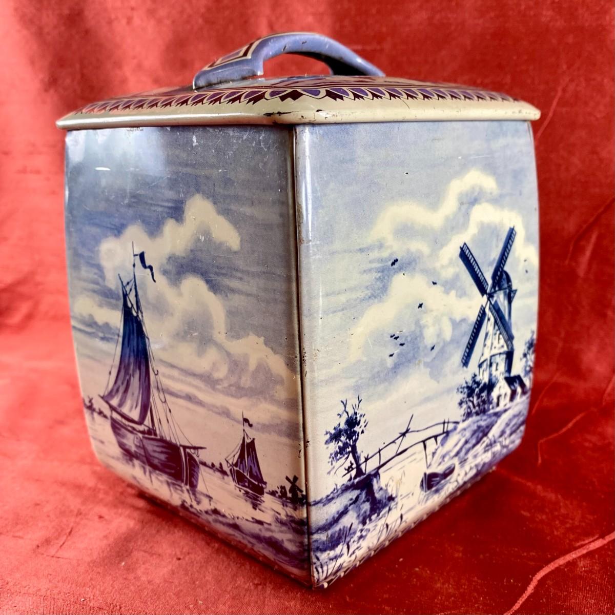 This auction lot is for a 1950's Dirk Eden Delft Style Tin. This great vintage item is a good find. From West Germany - Aburkation Feiner Teegebacke Jever Friesland Biscuit Tin. It measures about 5-inches square. Has a nice fitted lid with handle.