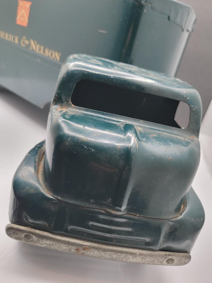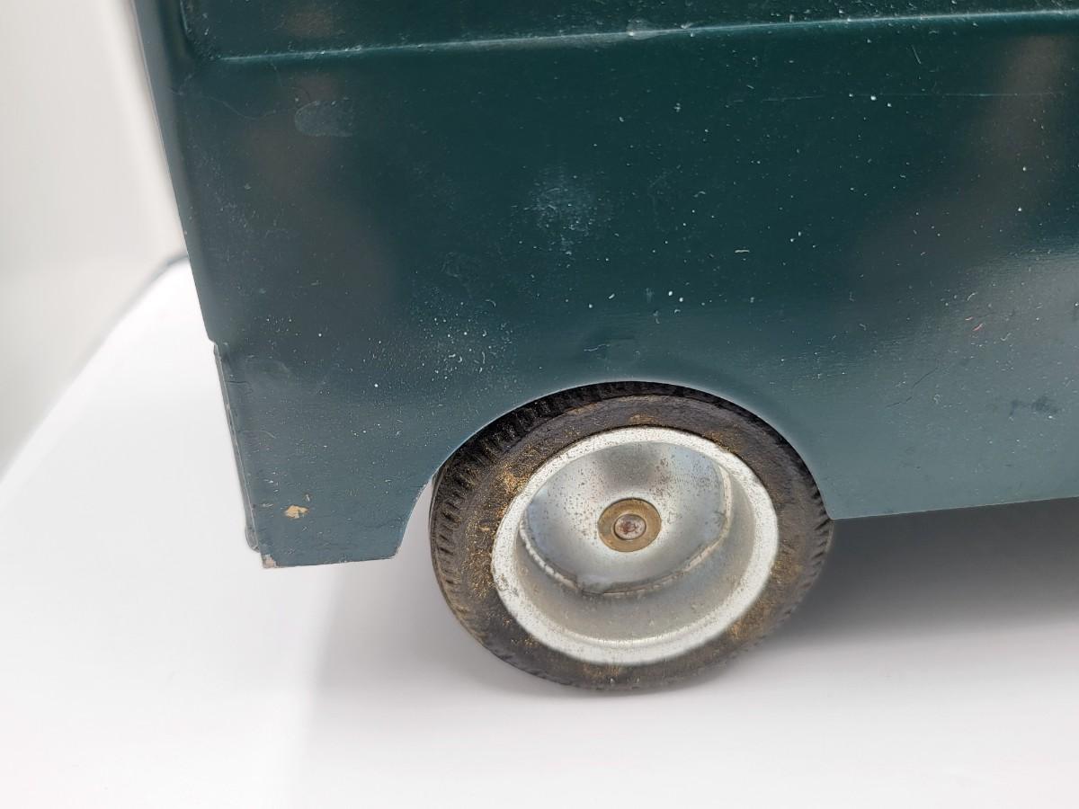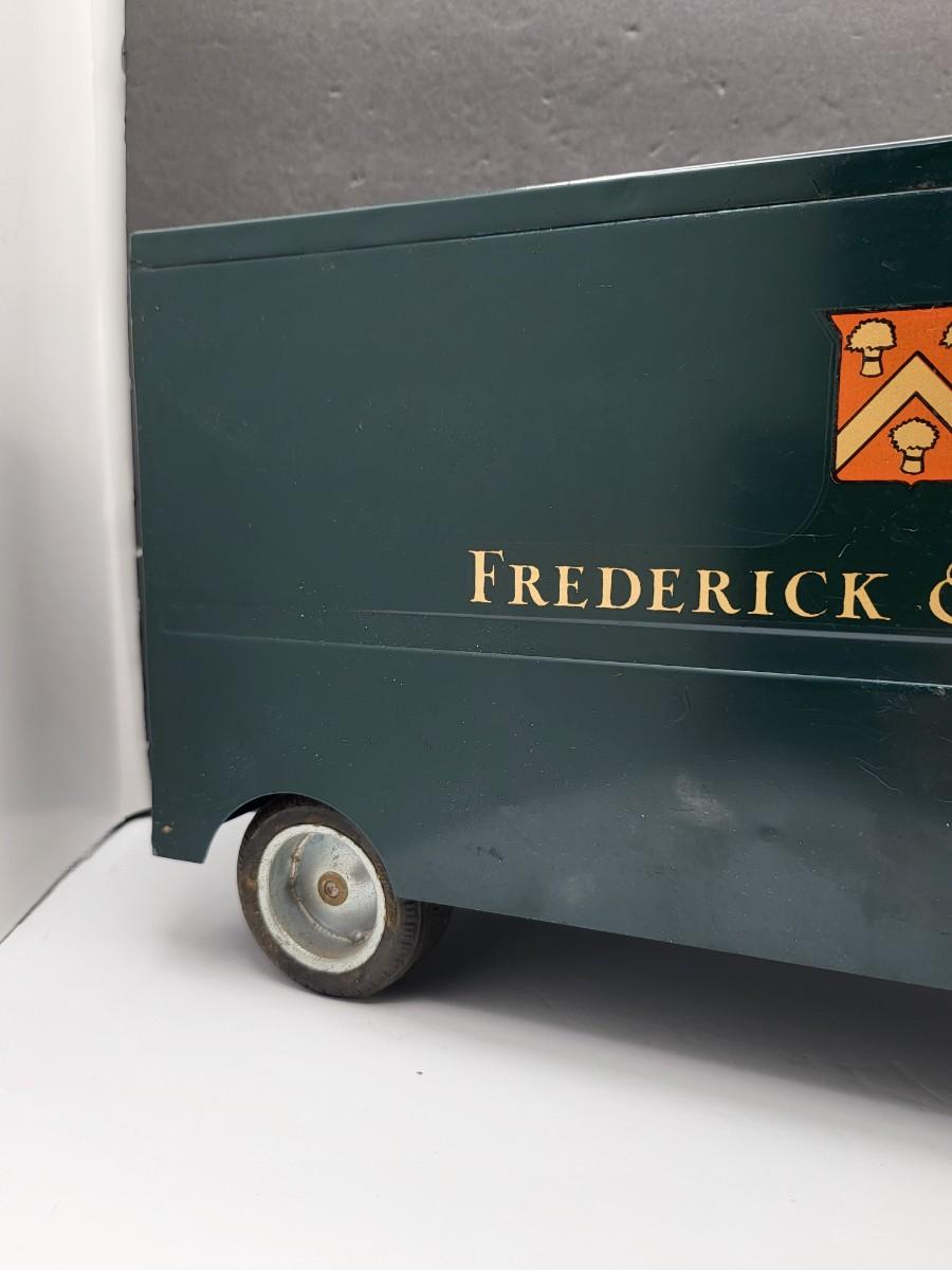 Vintage collectible! Two piece - Cab (9.5" x 6" x 5") and container.(15.5" x 8" x 6"). Found no other markings other than Frederick & Nelson on side. All the tires are intact, some denting. See all photos for condition details. Sold as found.