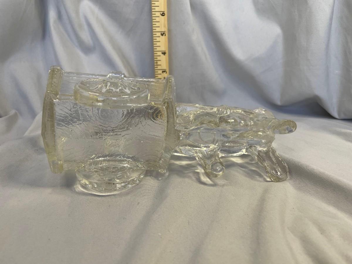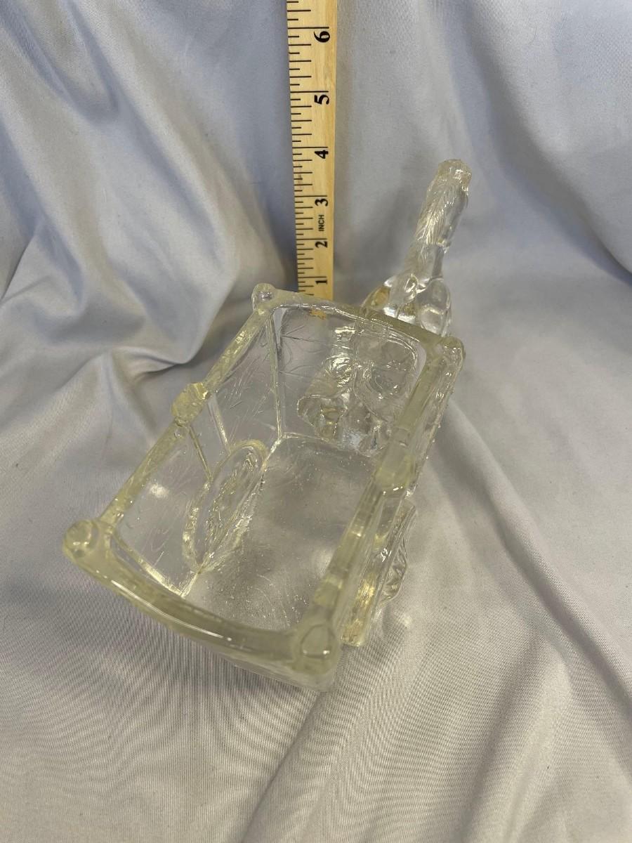 This heavy glass piece is about 9.5 in. by 4.5 in. and in excellent condition. It would be great to hold candy, nuts, cigarettes, change, or whatever else you would like to collect. It was made by Haley Glass Co who was in business between 1939-1972.<br />