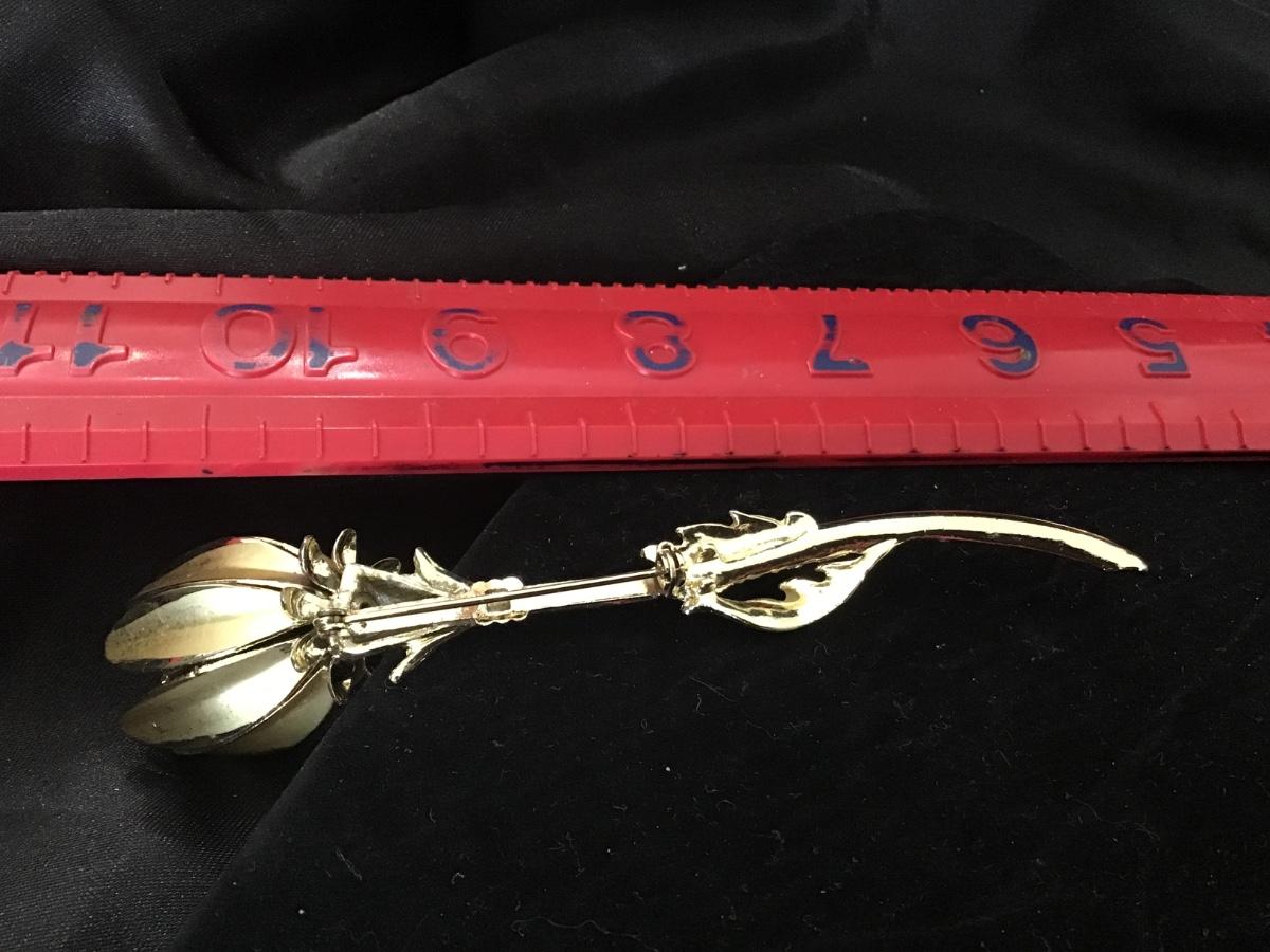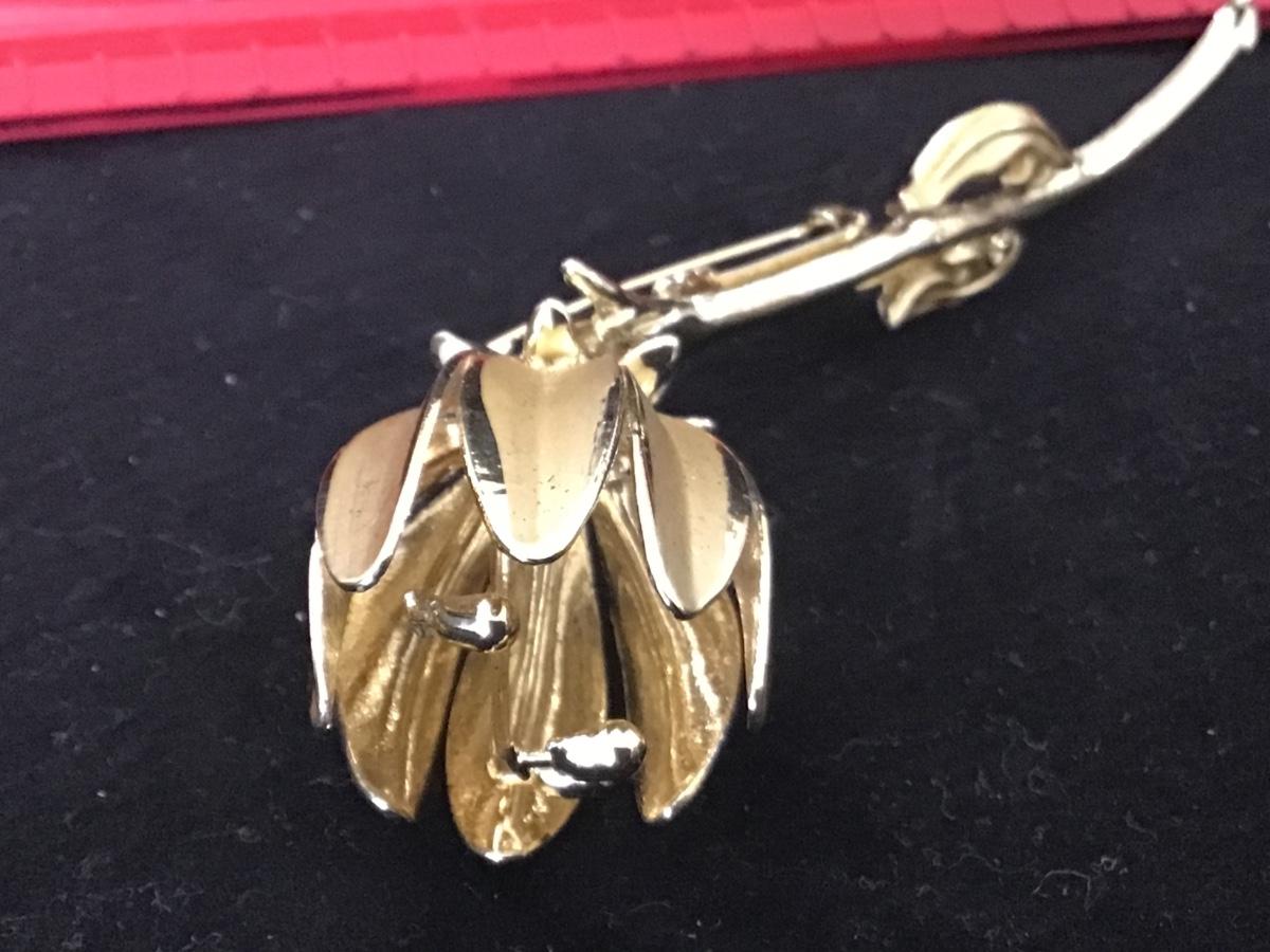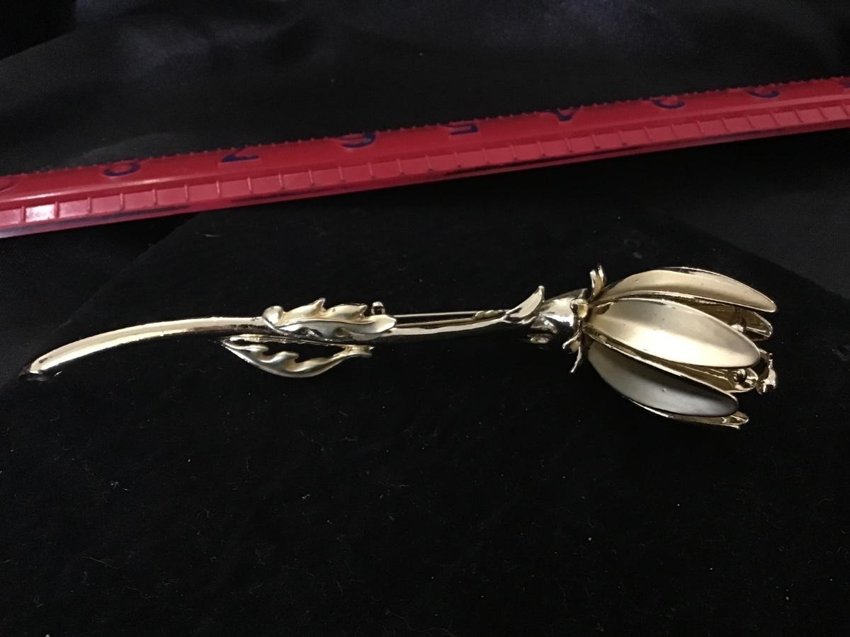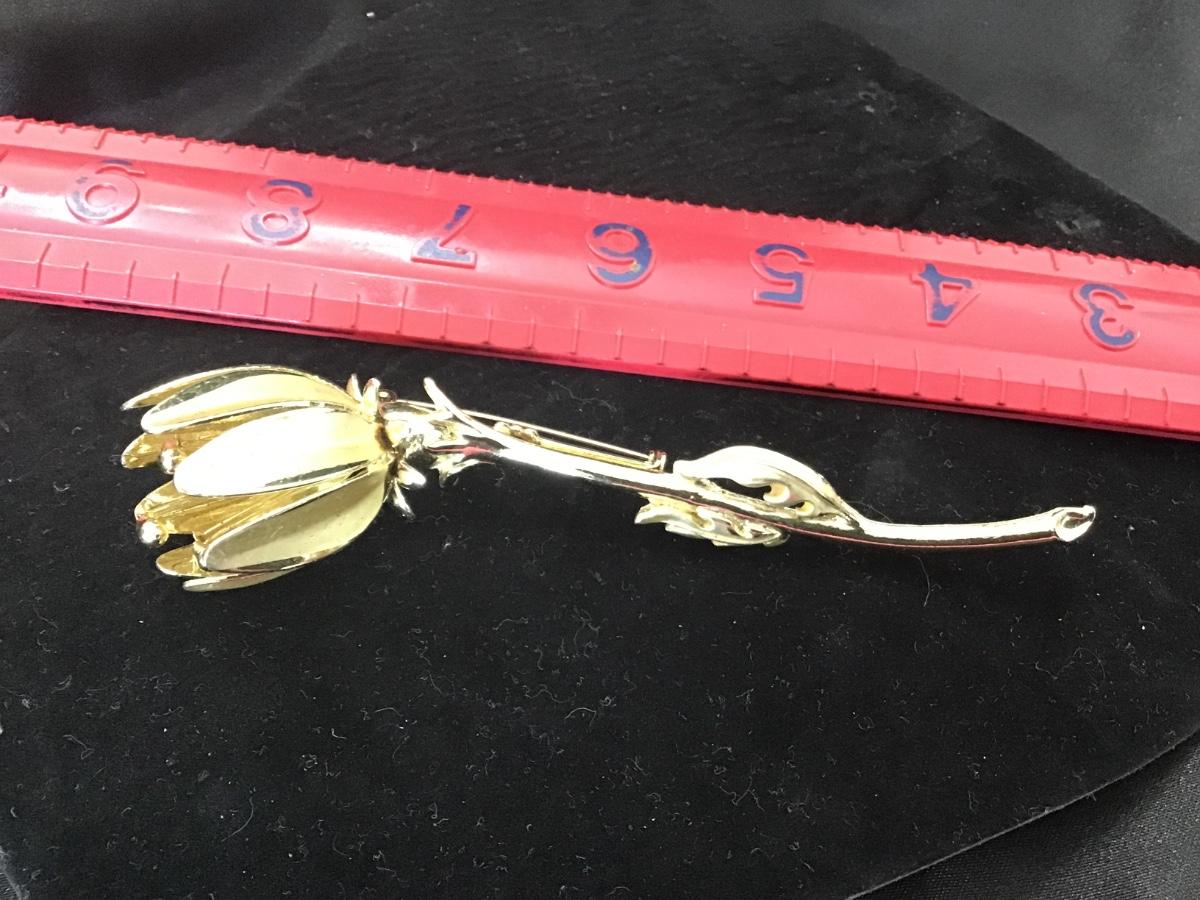 1950's Large Single Rose Rosebud Goldtone Flower Brooch