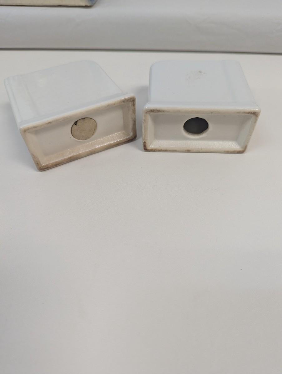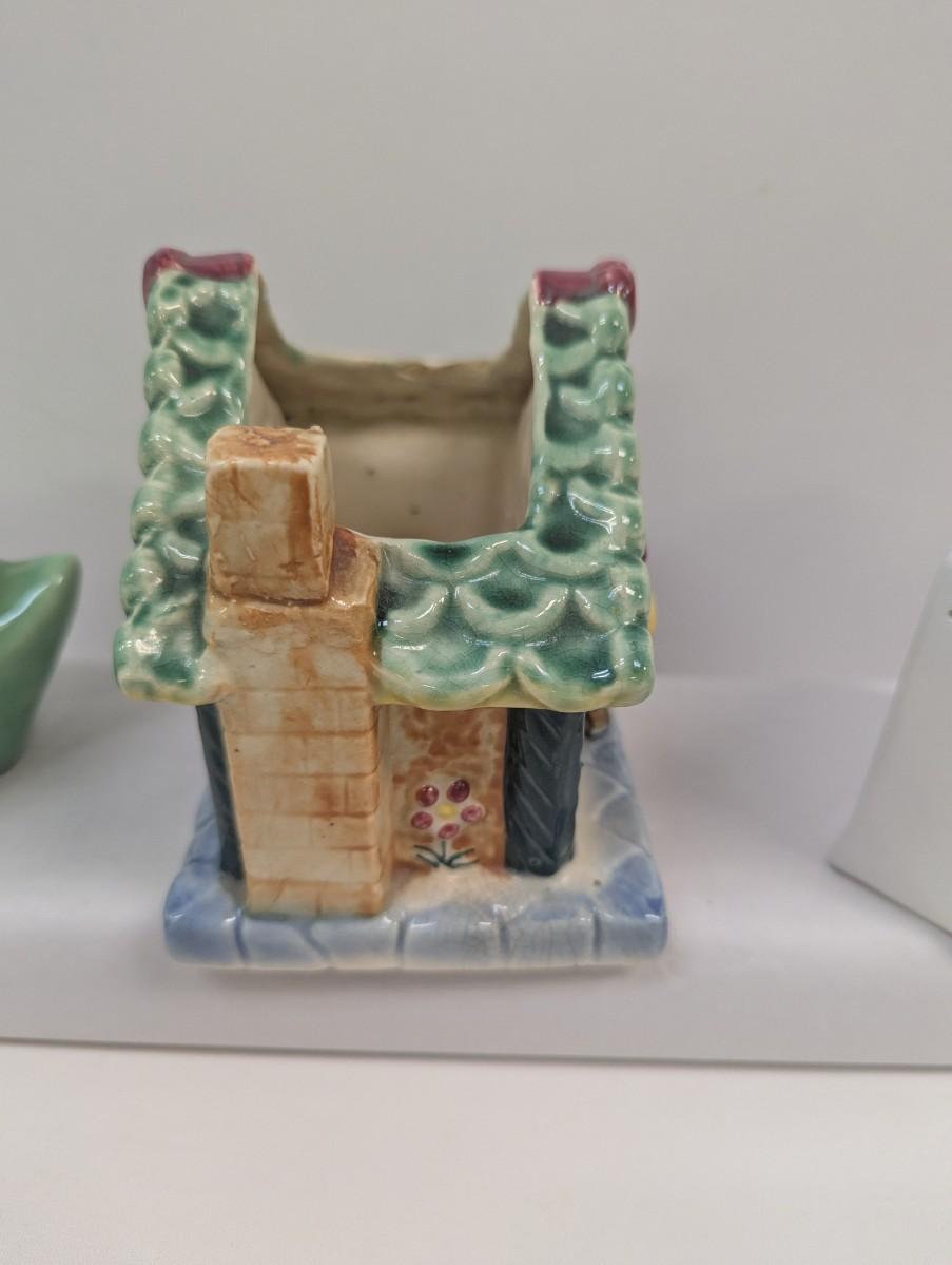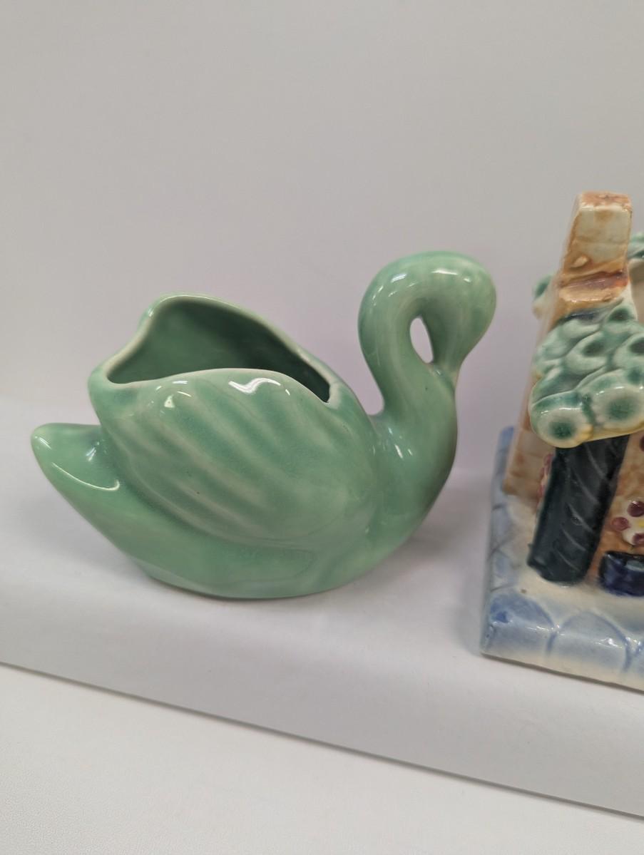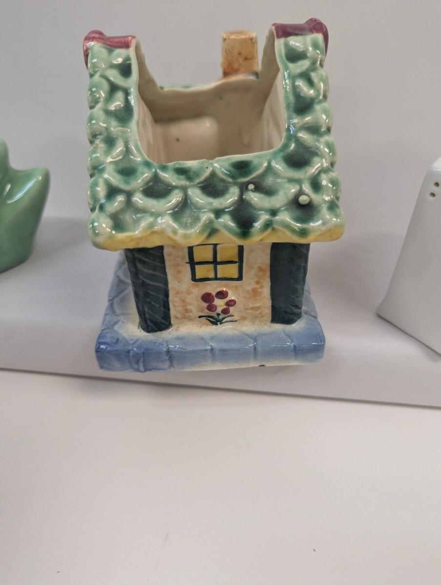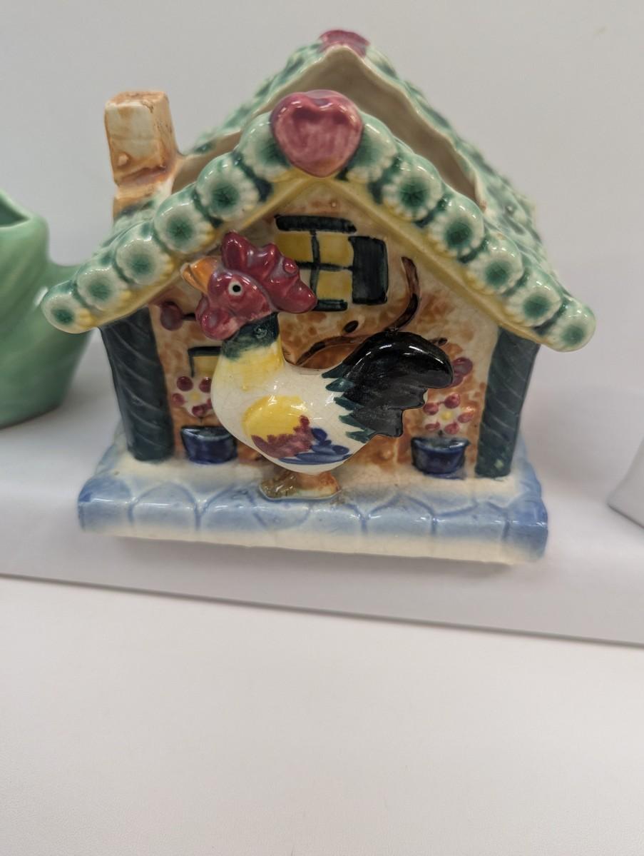 1950's O Keefe & Merrit White & Red Ceramic Stove Top Salt & Pepper Shakers Miniature Green Swan Planter 1940's Roster Planter
