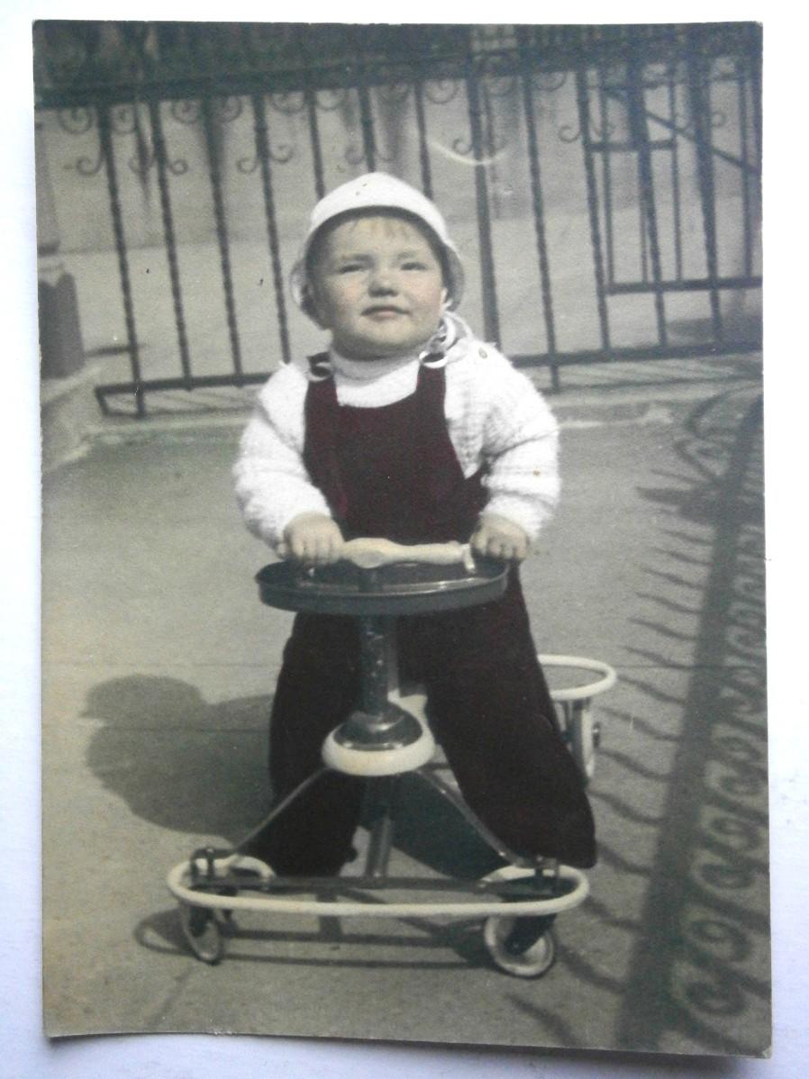 1950's photograph of Toddler in Walker, 5 x 7 in.