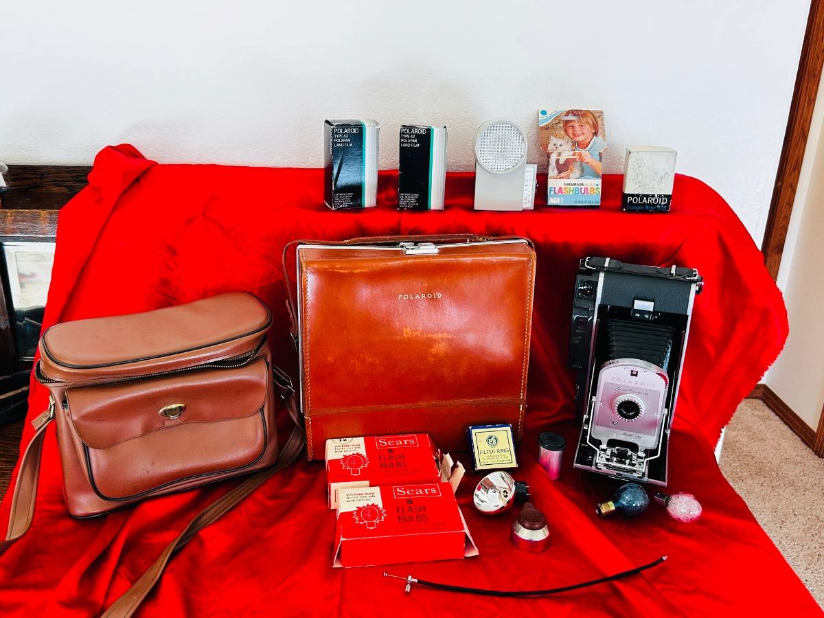 1950’s POLAROID LAND CAMERA MODEL 150 IN ORIGINAL CASE WITH ACCESSORIES