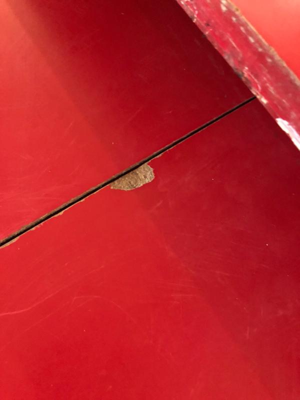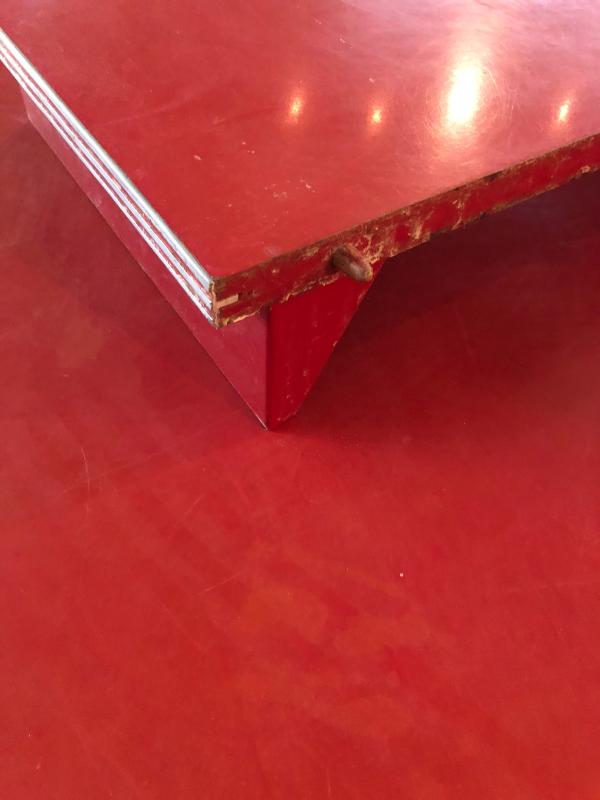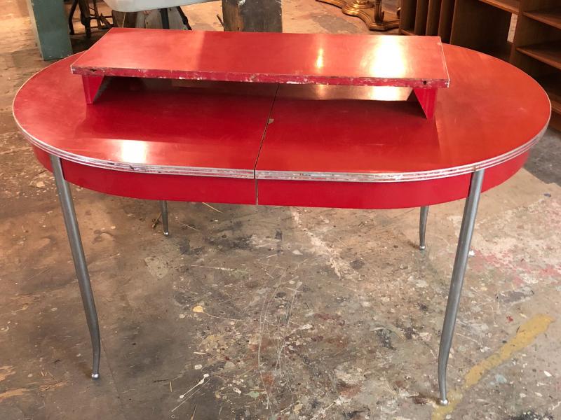 Table measures 53" by 33" one 12" leaf included. See photo's one small chip.