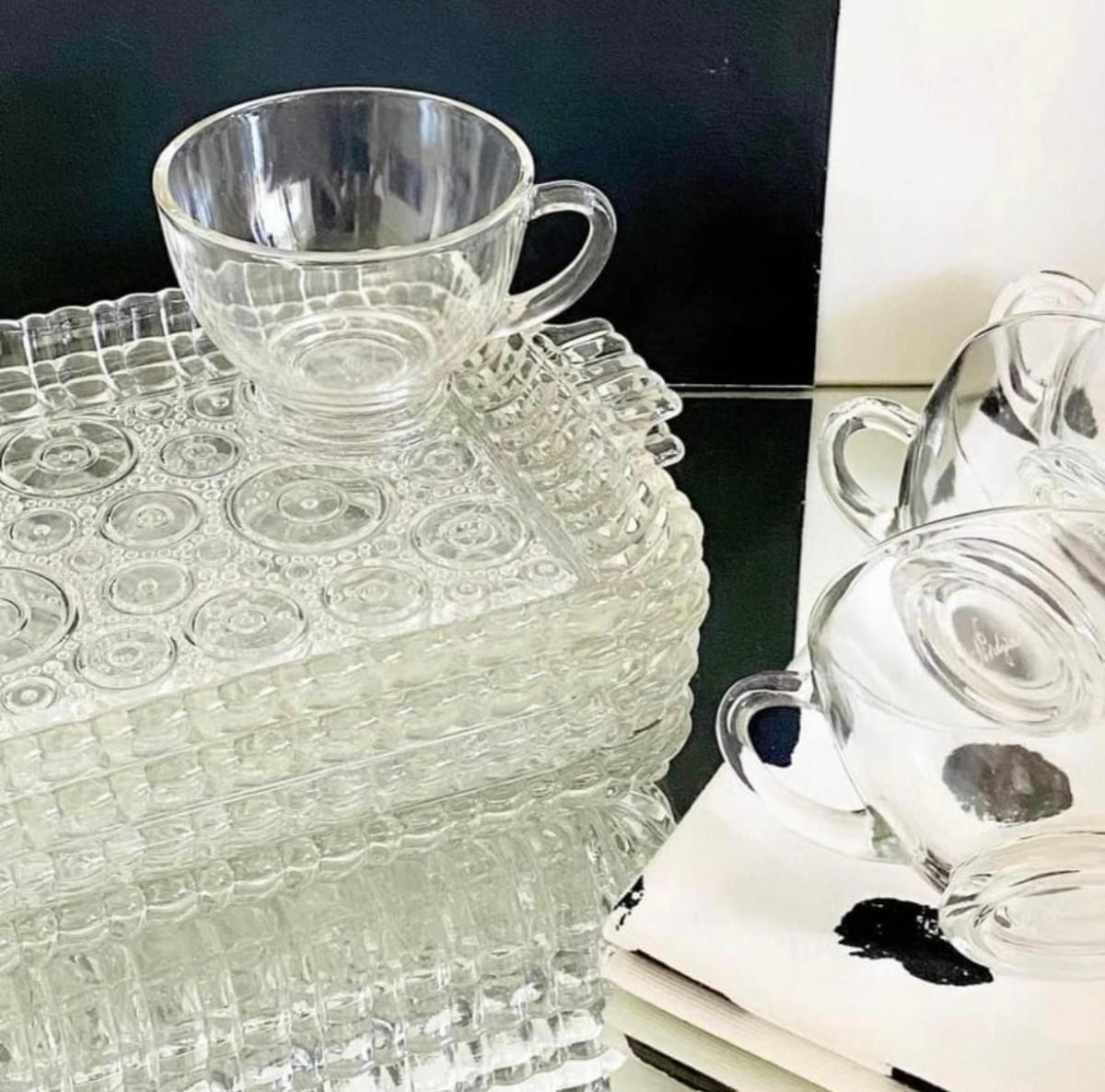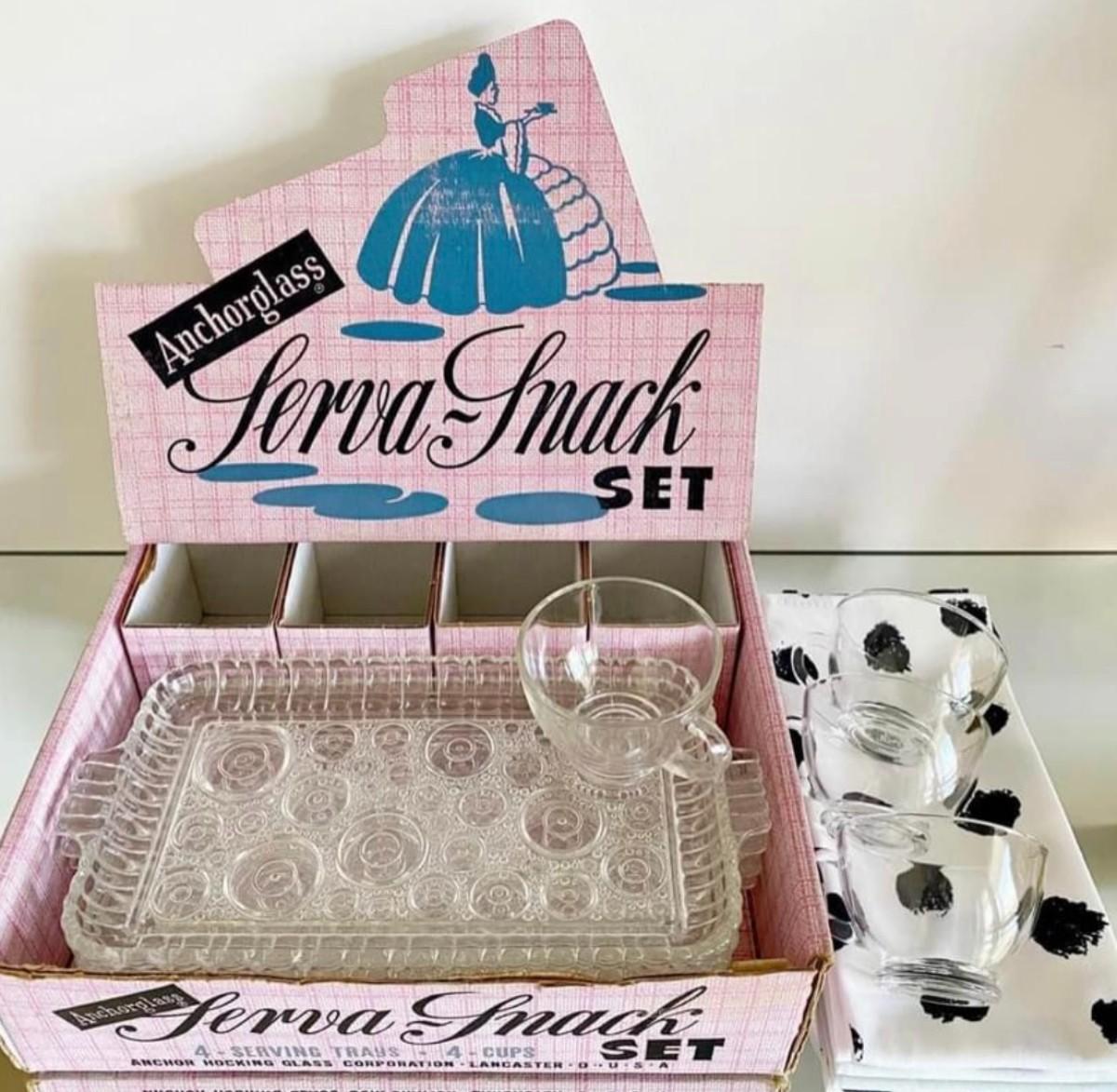 1950s Serva-Snack Set | Vintage Colonial Lady Pattern, Anchorglass, Anchor Hocking