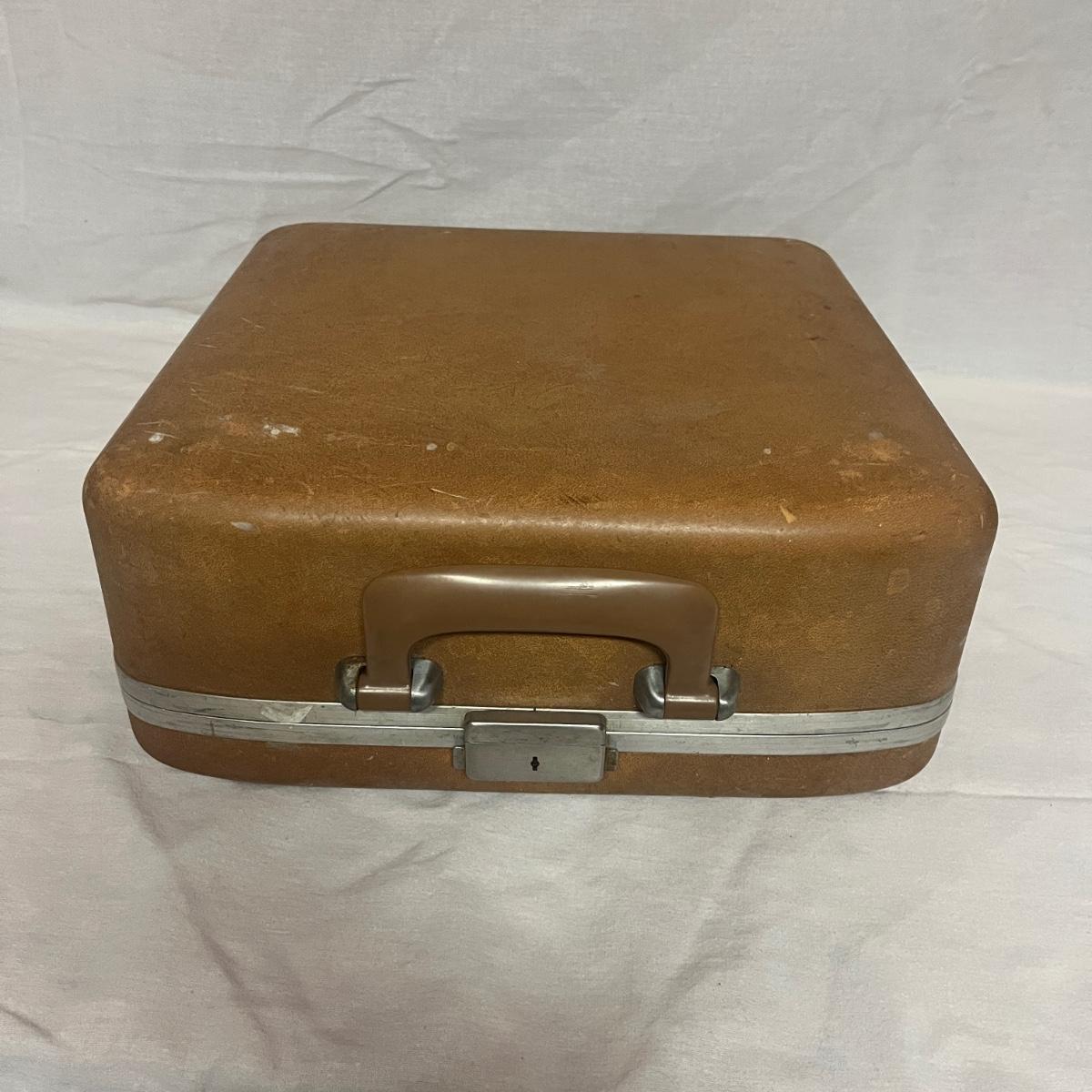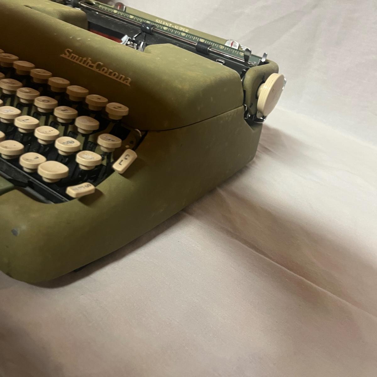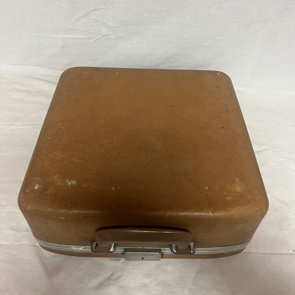 Lot includes a Smith Corona Silent-Super portable typewriter in case. Case measures 13” x 13” x 6”H. Typewriter keys moved freely when pushed, but ribbon appears to need to be replaced.