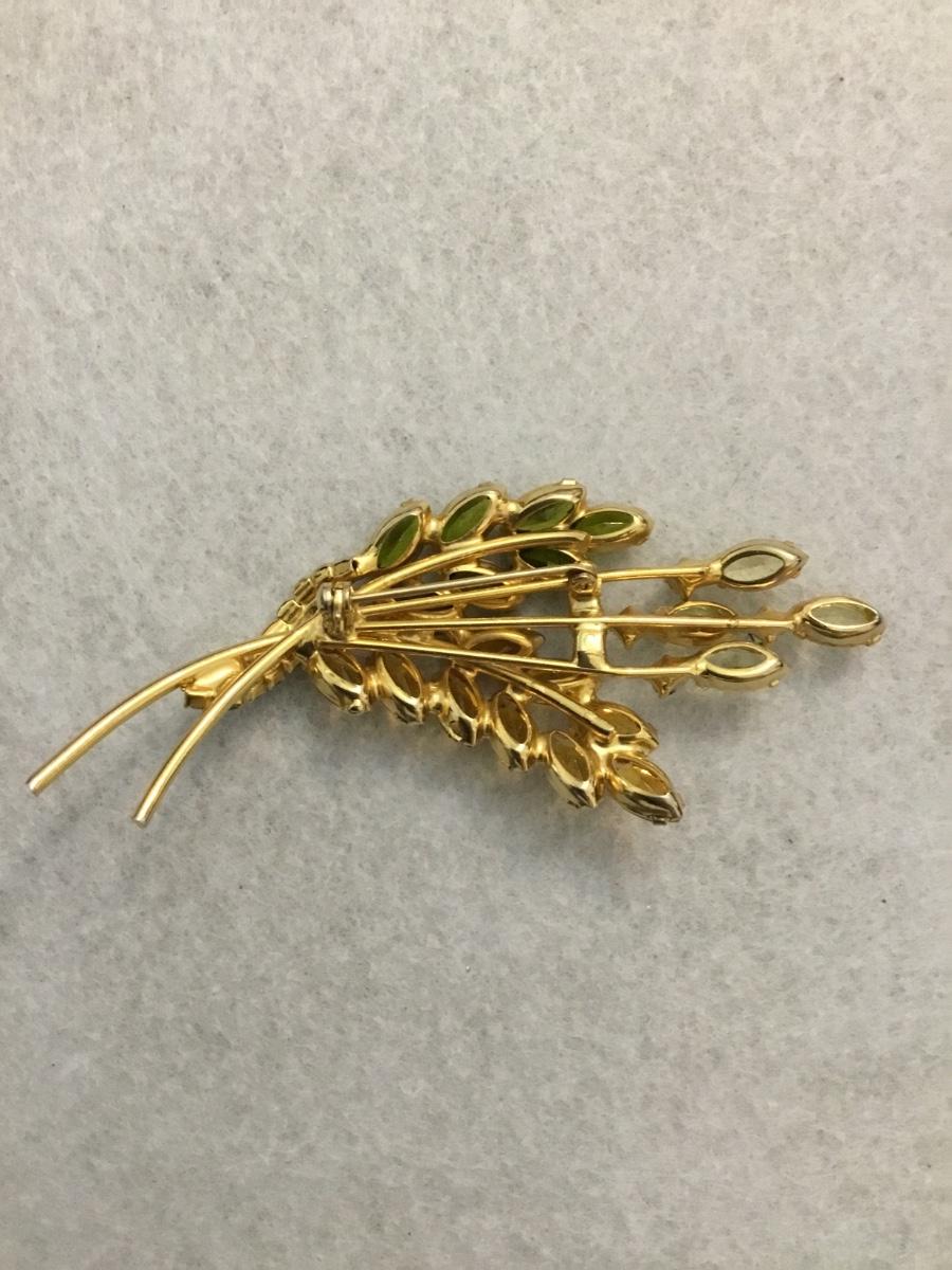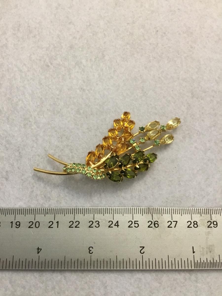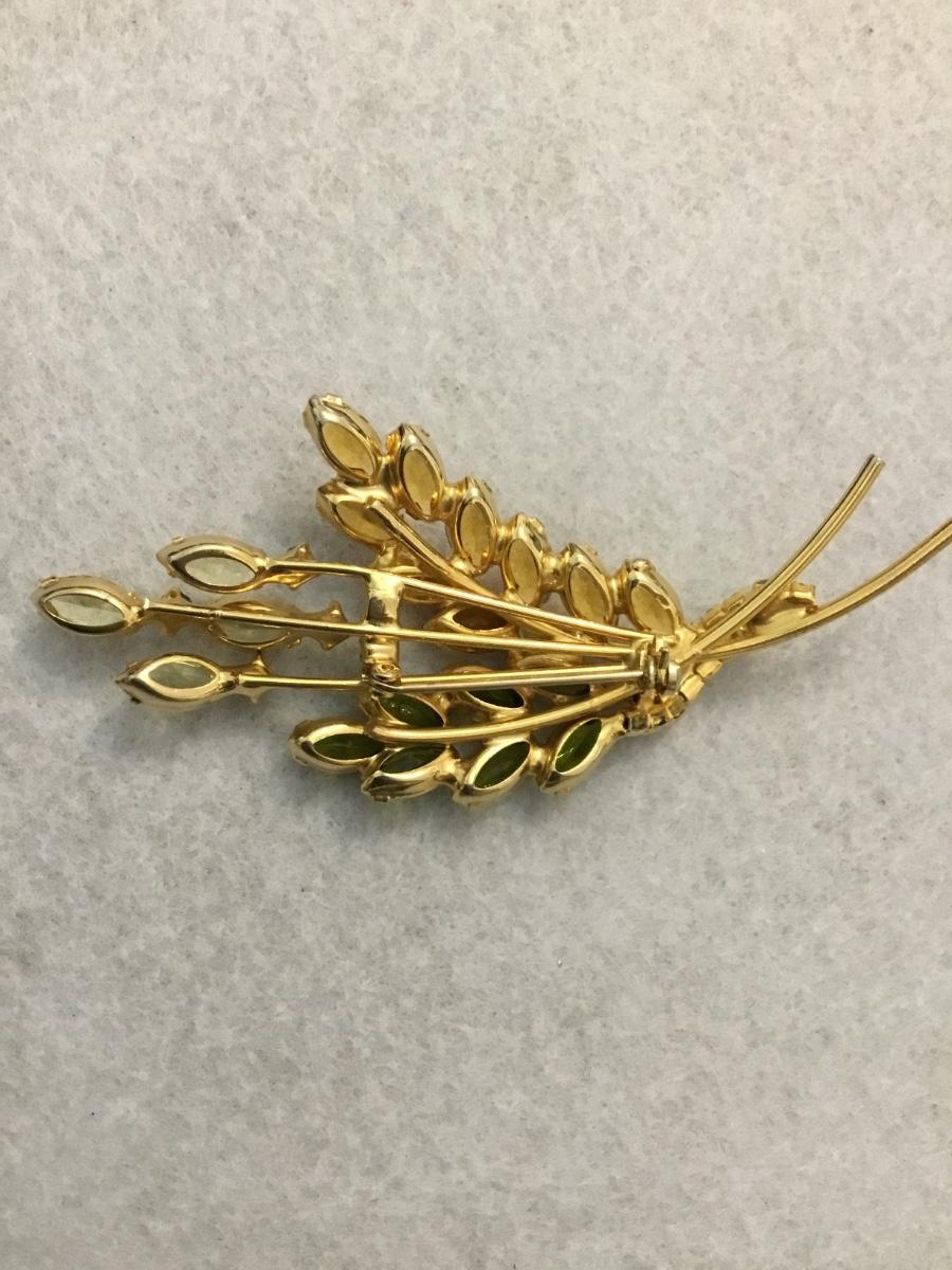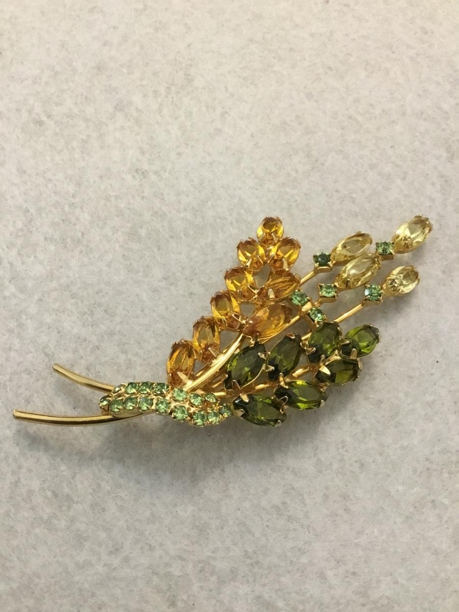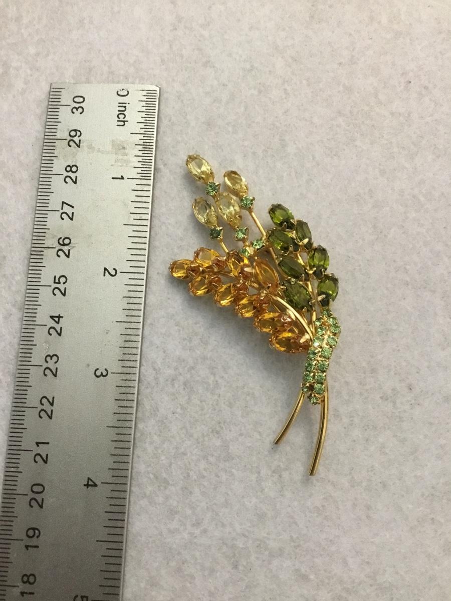1950s sparkling green and yellow, crystal rhinestone flower brooch