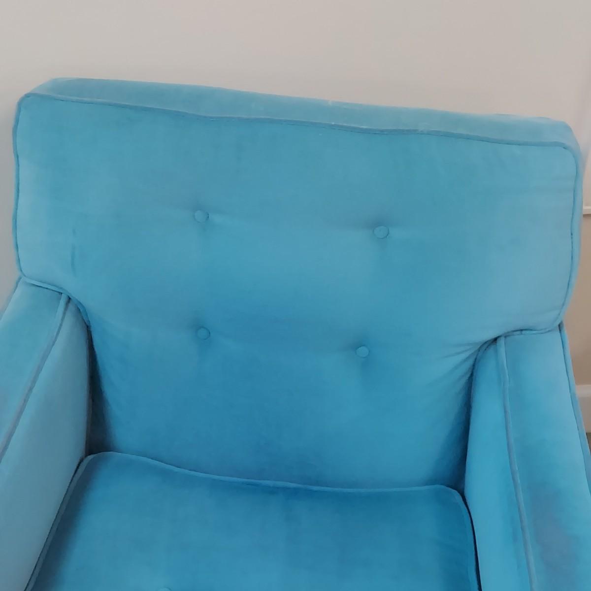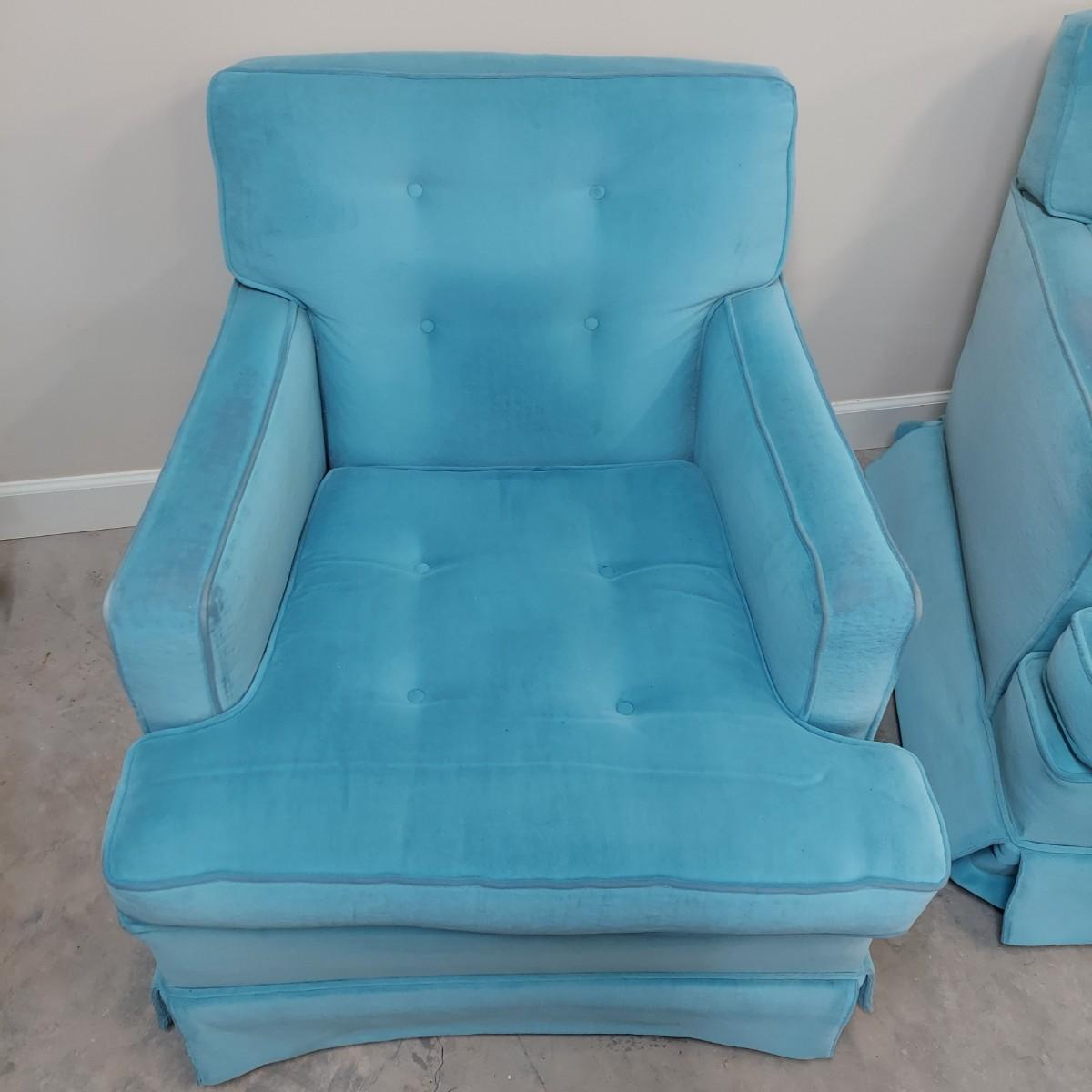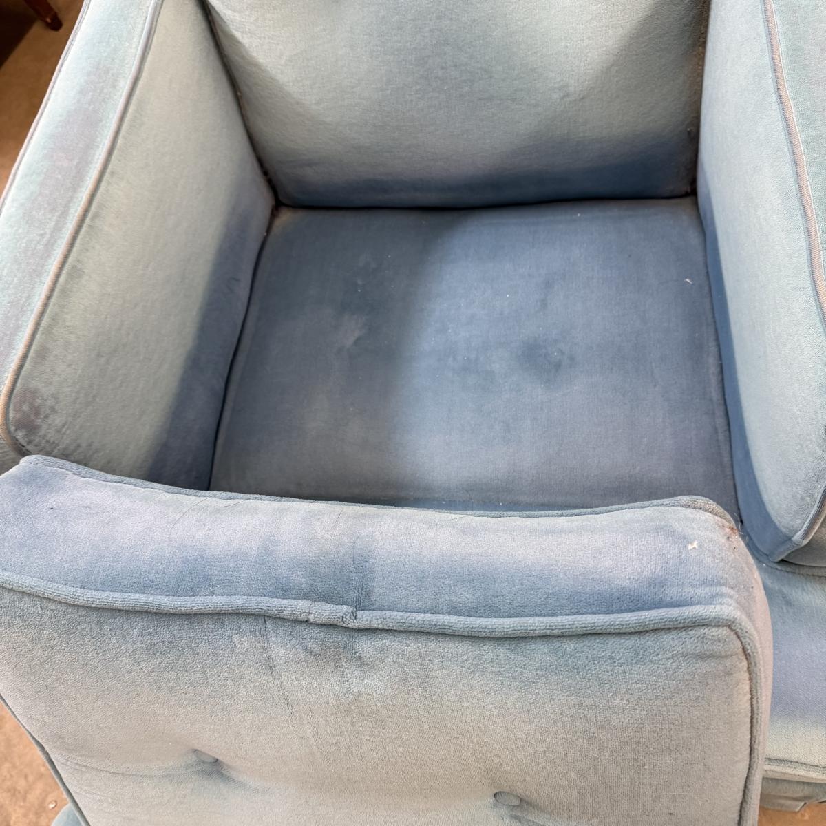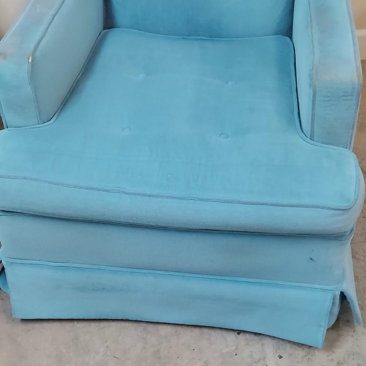 Two upholstered chairs by Thomasville. Some fading and light wear to fabric. Last picture shown is not true to color. Please see photos for details. Each chair measures approximately 30” x 33” x 30"H with a 16” seat height.
