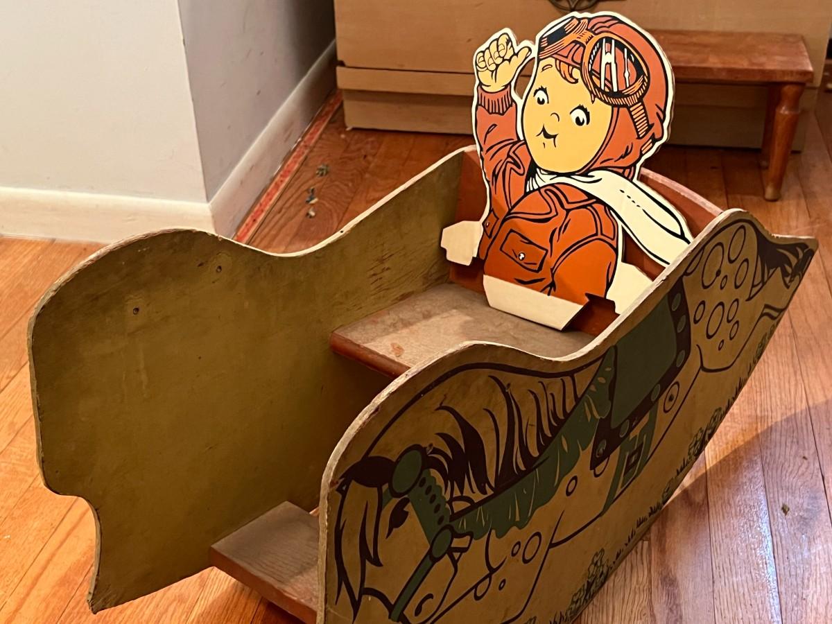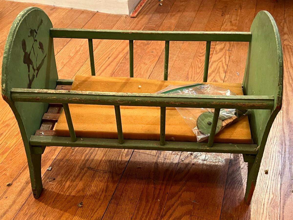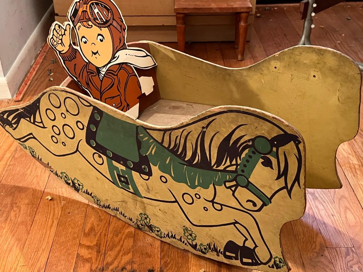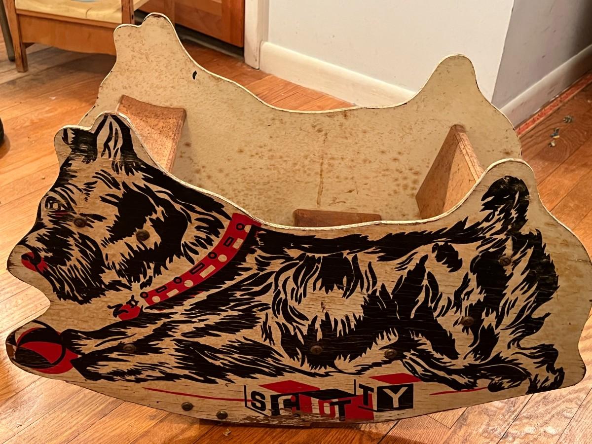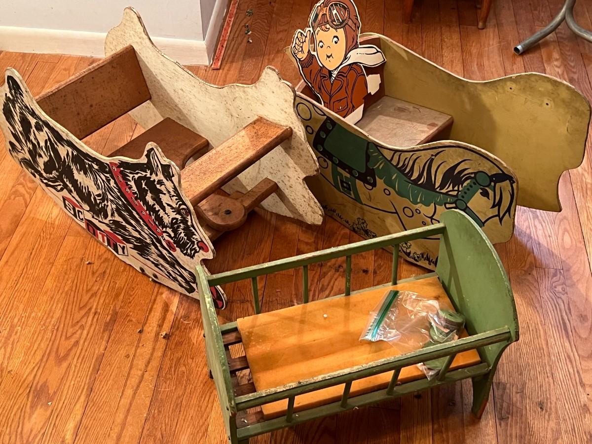 1950s Toddler Horse and Scotty Wood Rockers and Baby Doll Crib