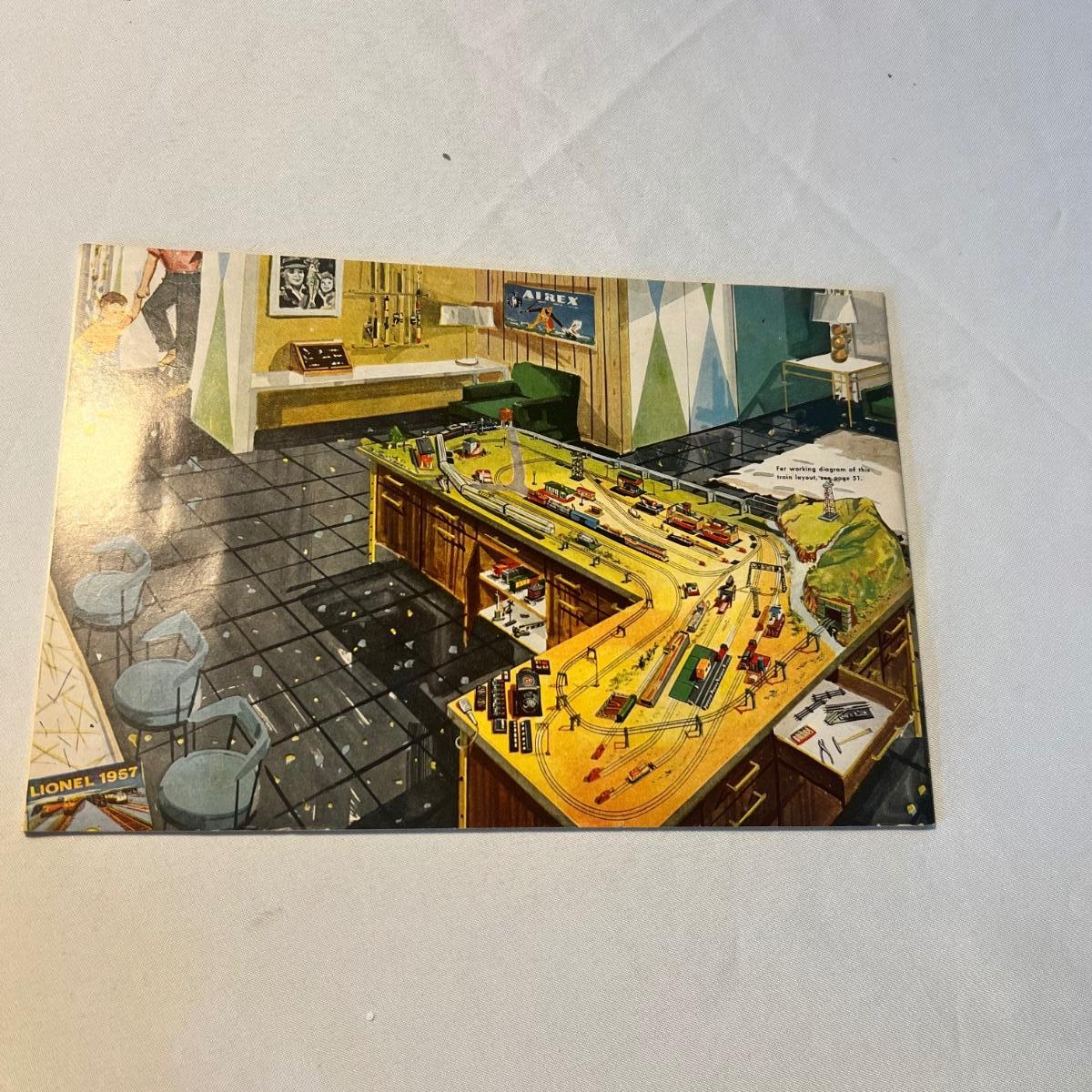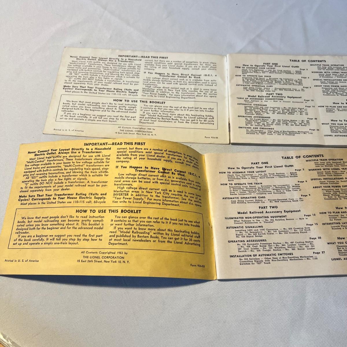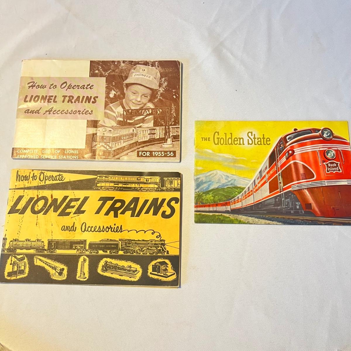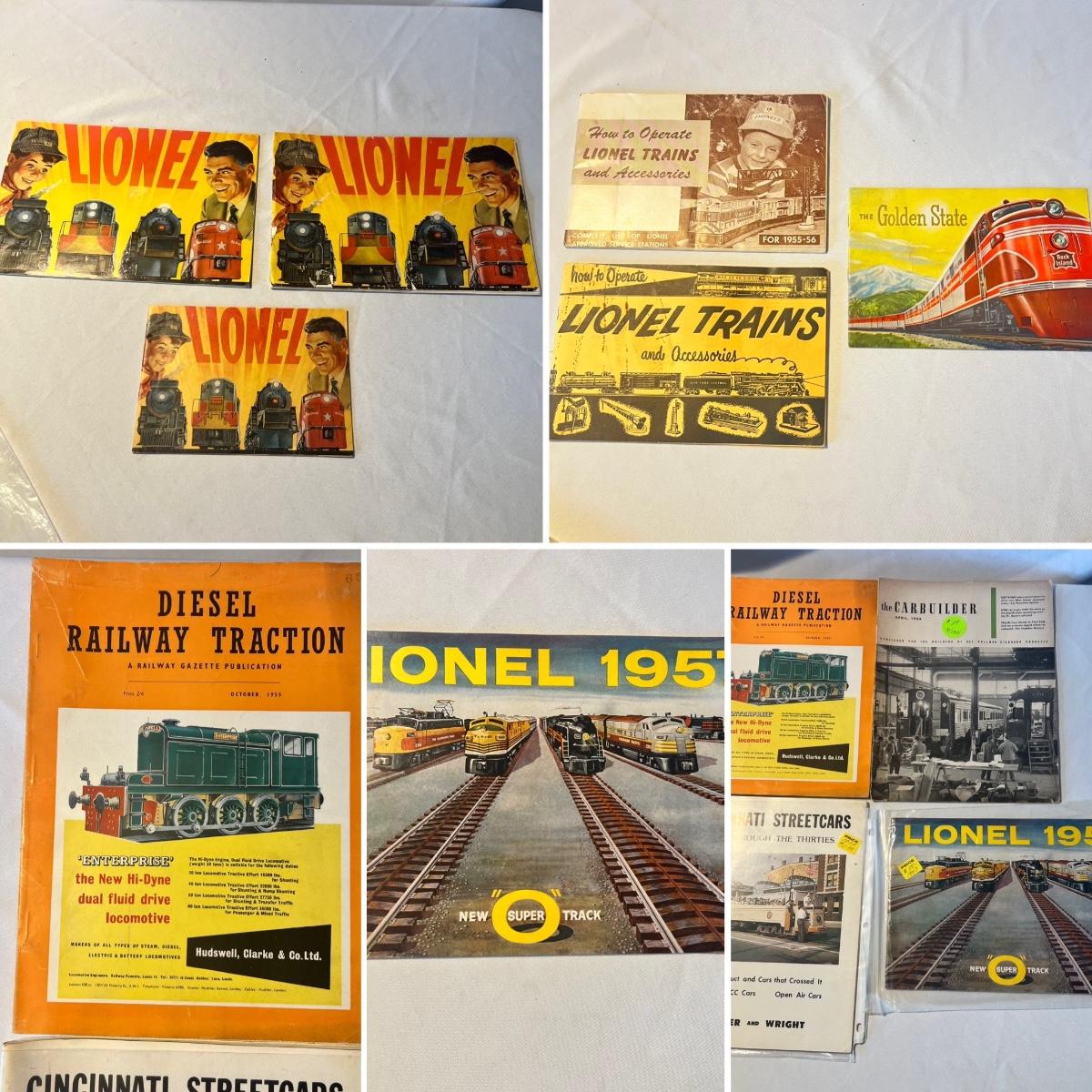 This nostalgic assortment of mostly 1950’s vintage items includes brochures, timetables and more. See photos for full inventory and note the condition of some items. There are three duplicates of the Lionel brochures with yellow background; two are larger and of these, one is in much better condition. Most items have been stored in individual plastic sleeves. Please note that any price tag seen on an item was not put there by Sterling Transitions and does not reflect the current value of the item.