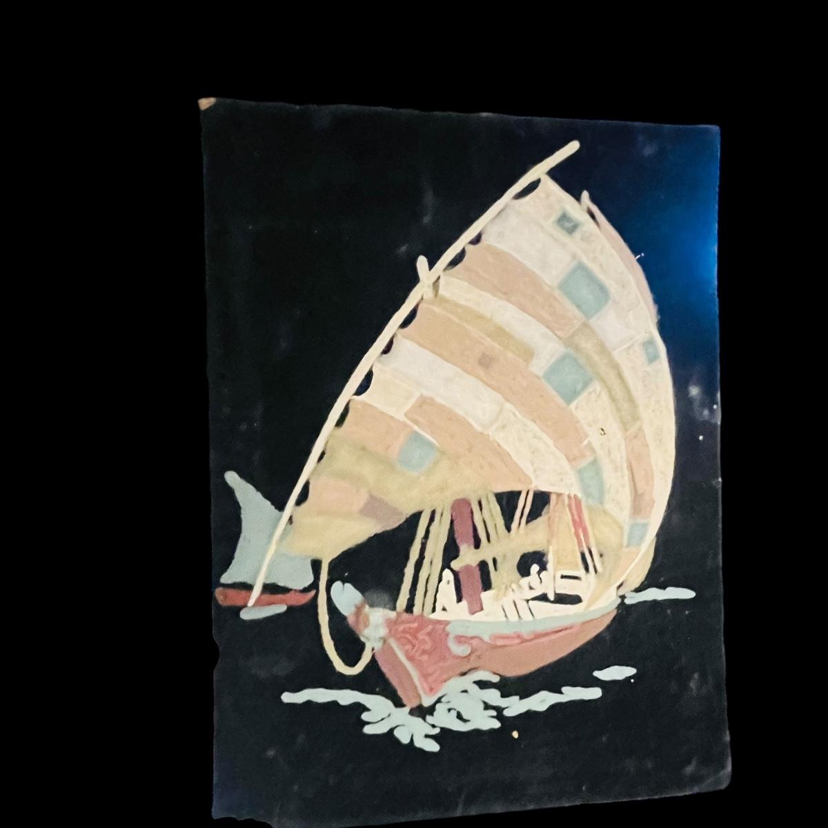 1950's Velvet Glow In the Dark Paint by Numbers Sail Boat, Nautical MCM Art
