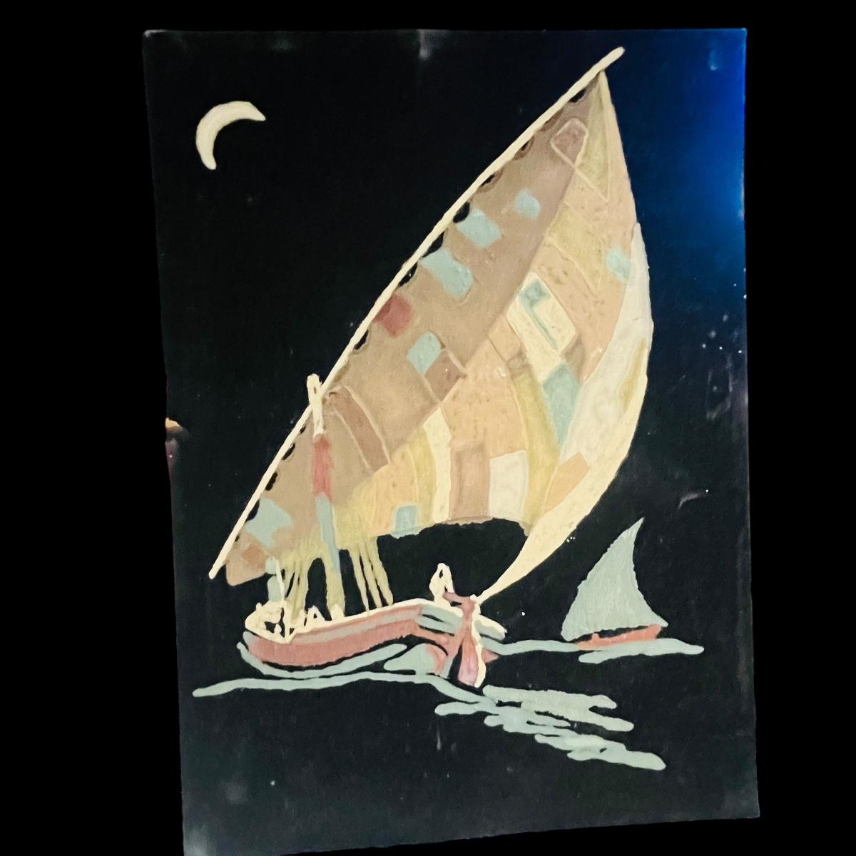 1950's Velvet Glow In the Dark Paint by Numbers Sail Boat
