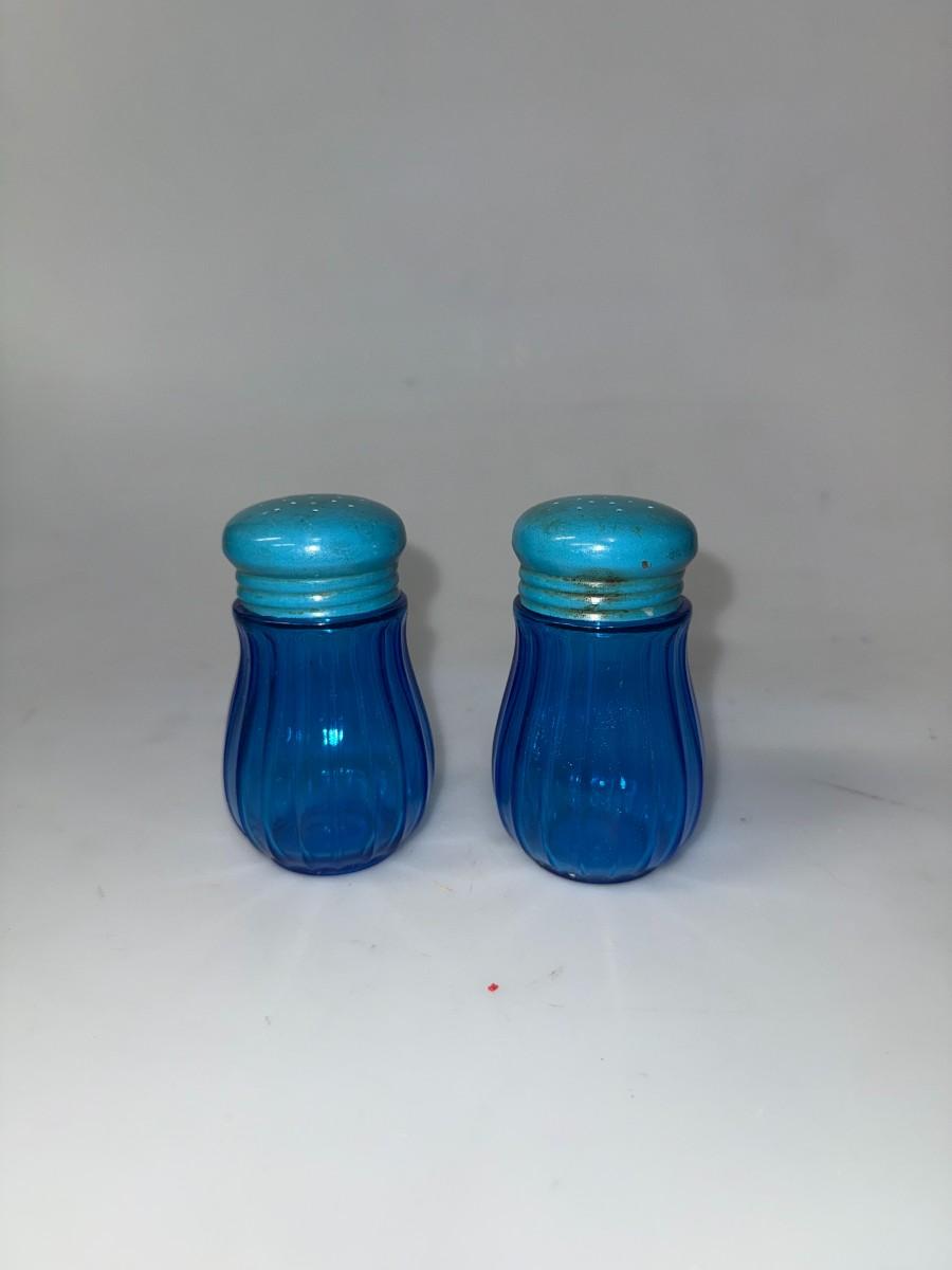 1950s Vintage Blue Depression Glass Salt and pepper shaker