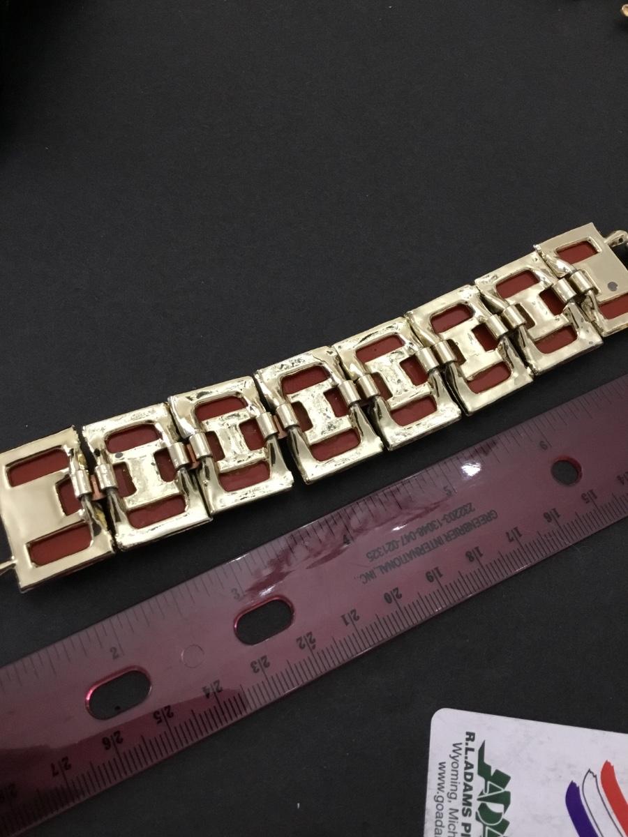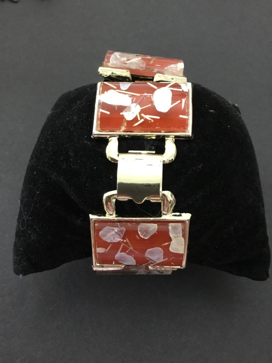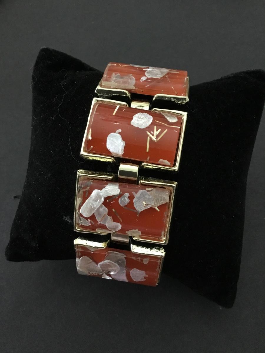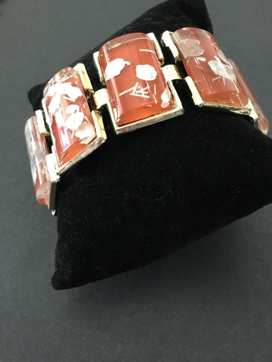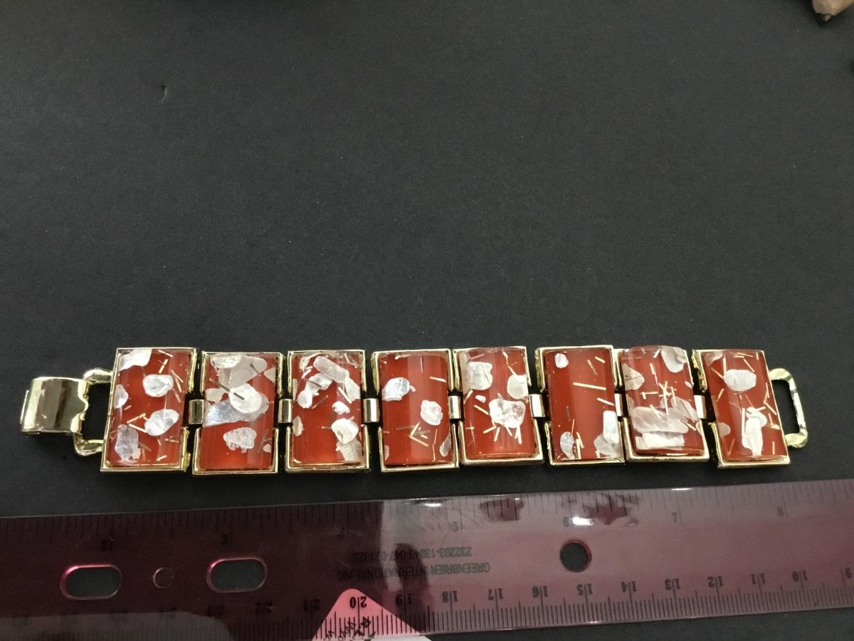 1950s vintage confetti, orange Lucite mid-century retro bracelet