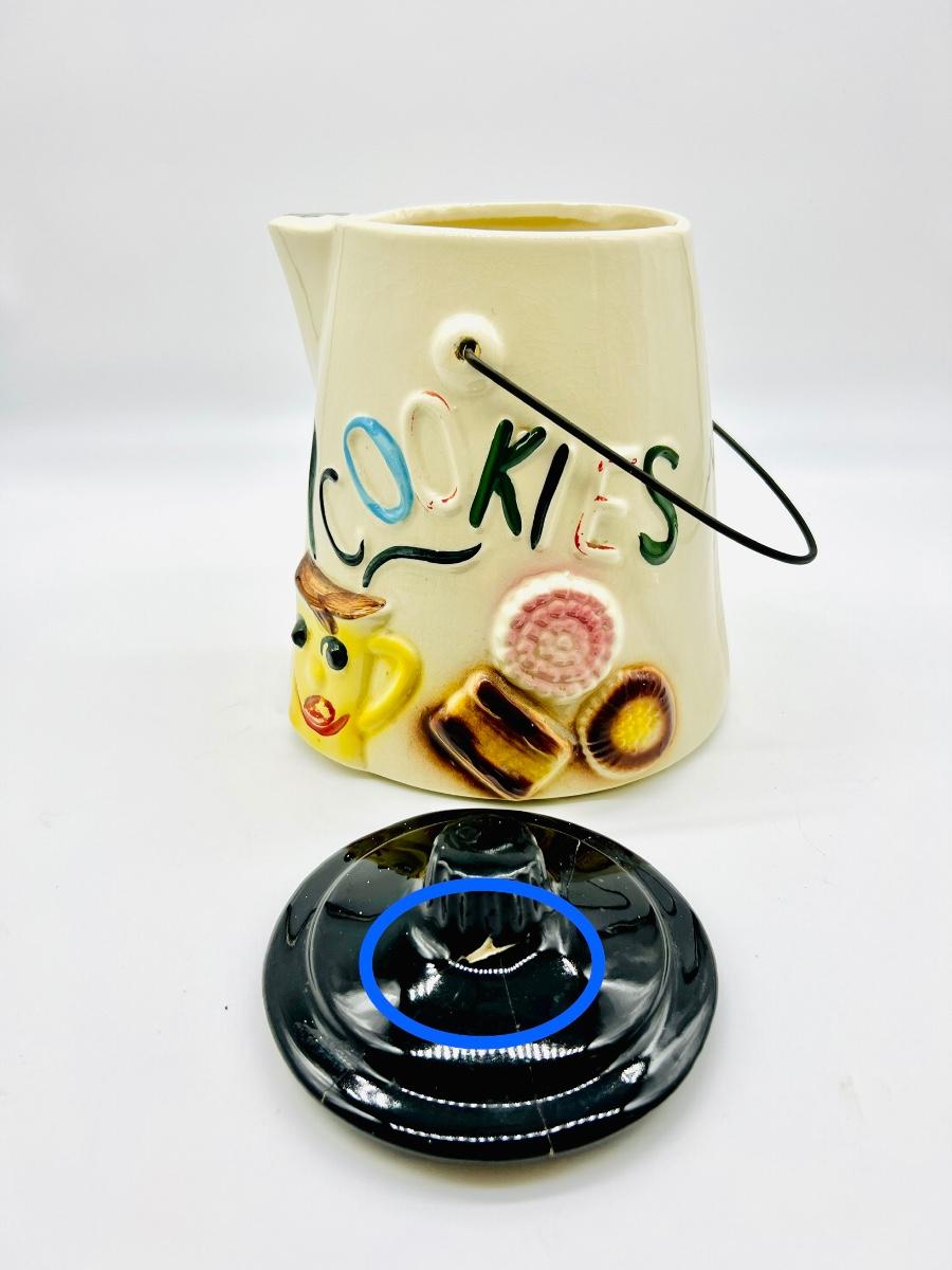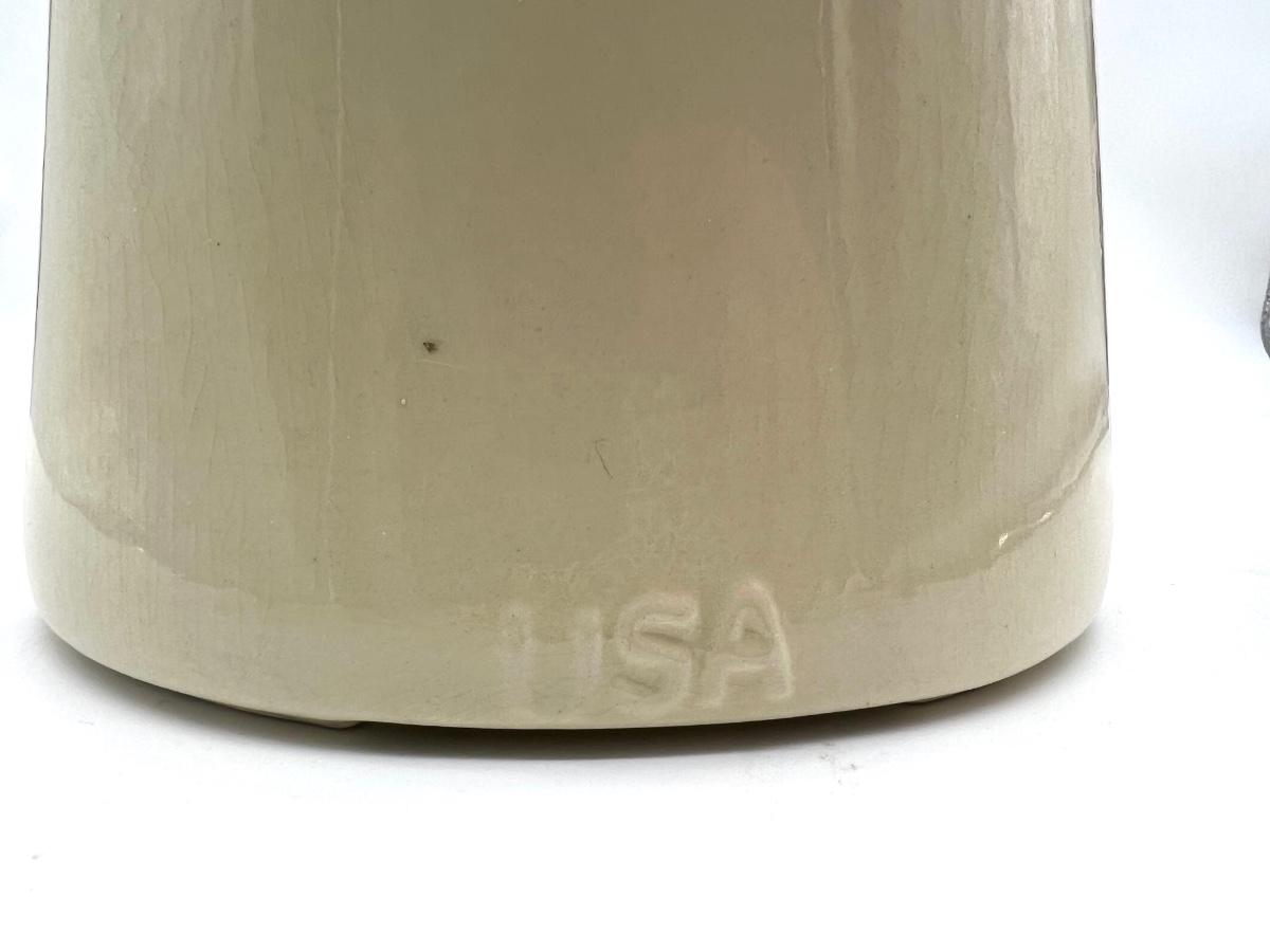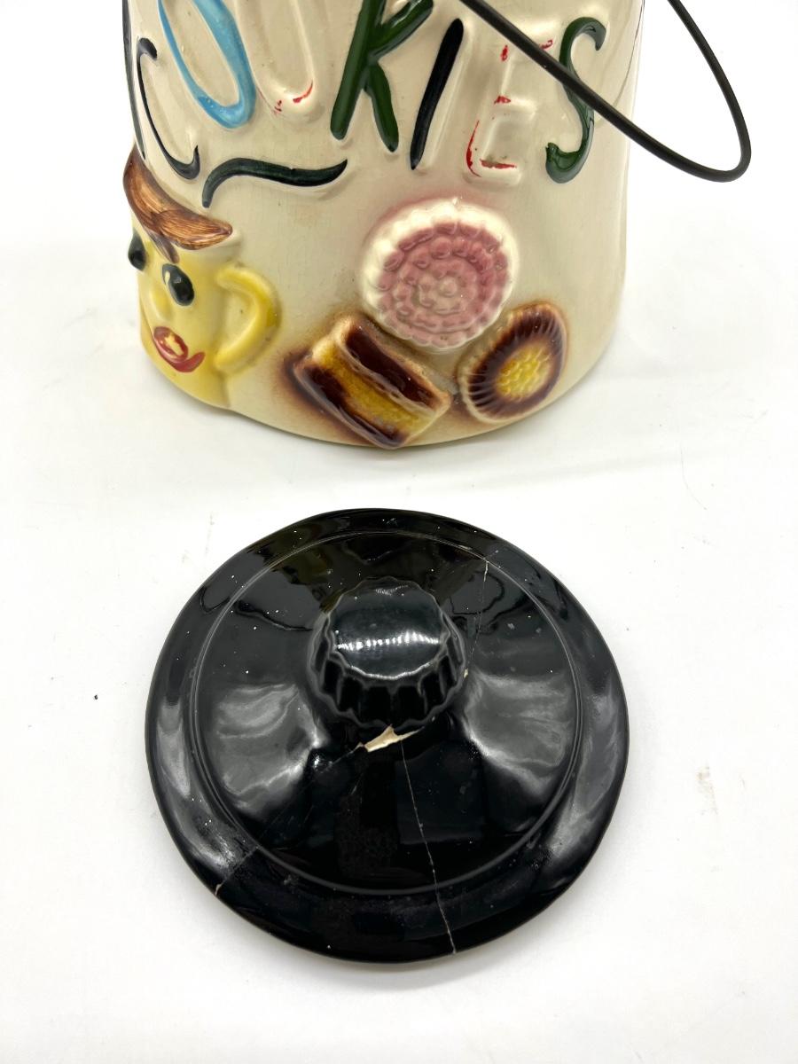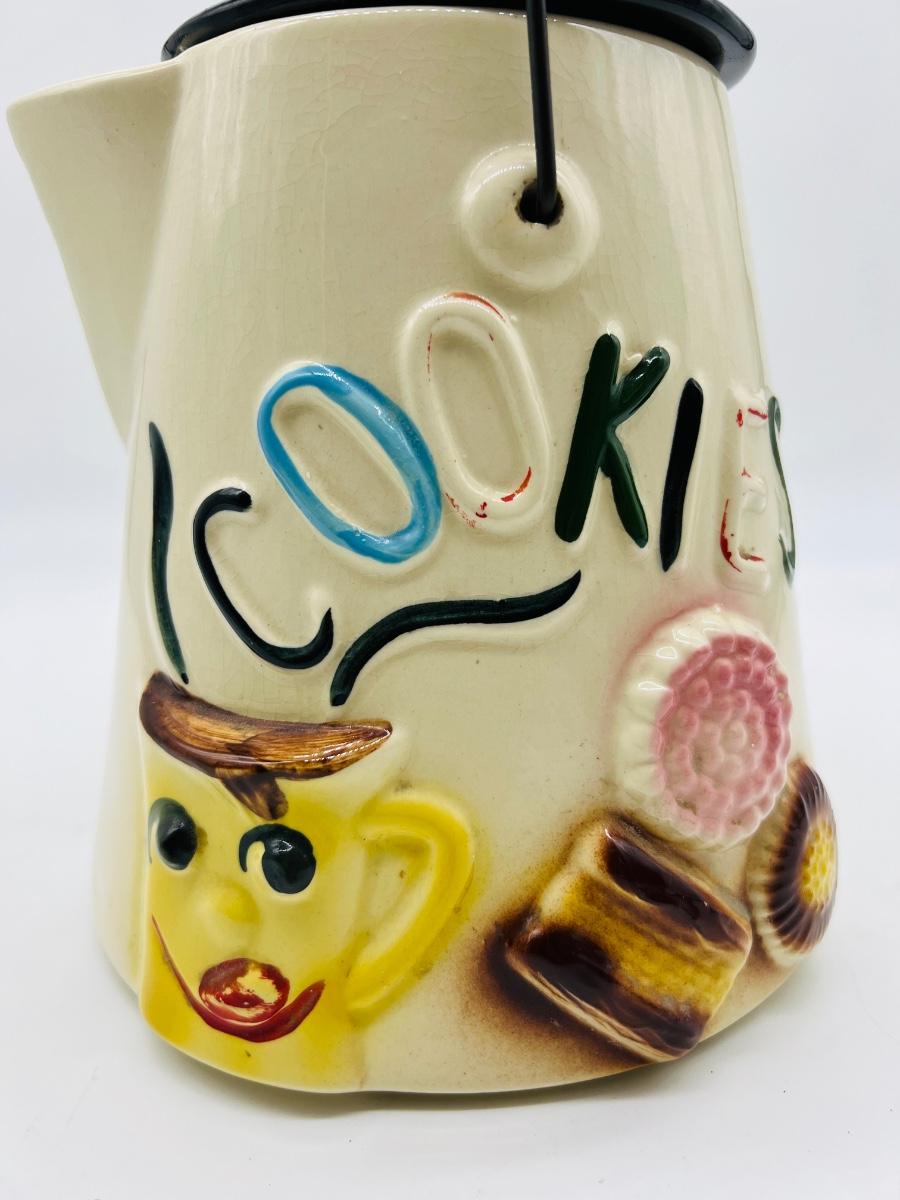 Vintage Cookie Jar Coffee Pot 1950s - American Bisque measures 10 inches tall and approximately 9 inches wide. Lid does have a chip/crack see pictures.