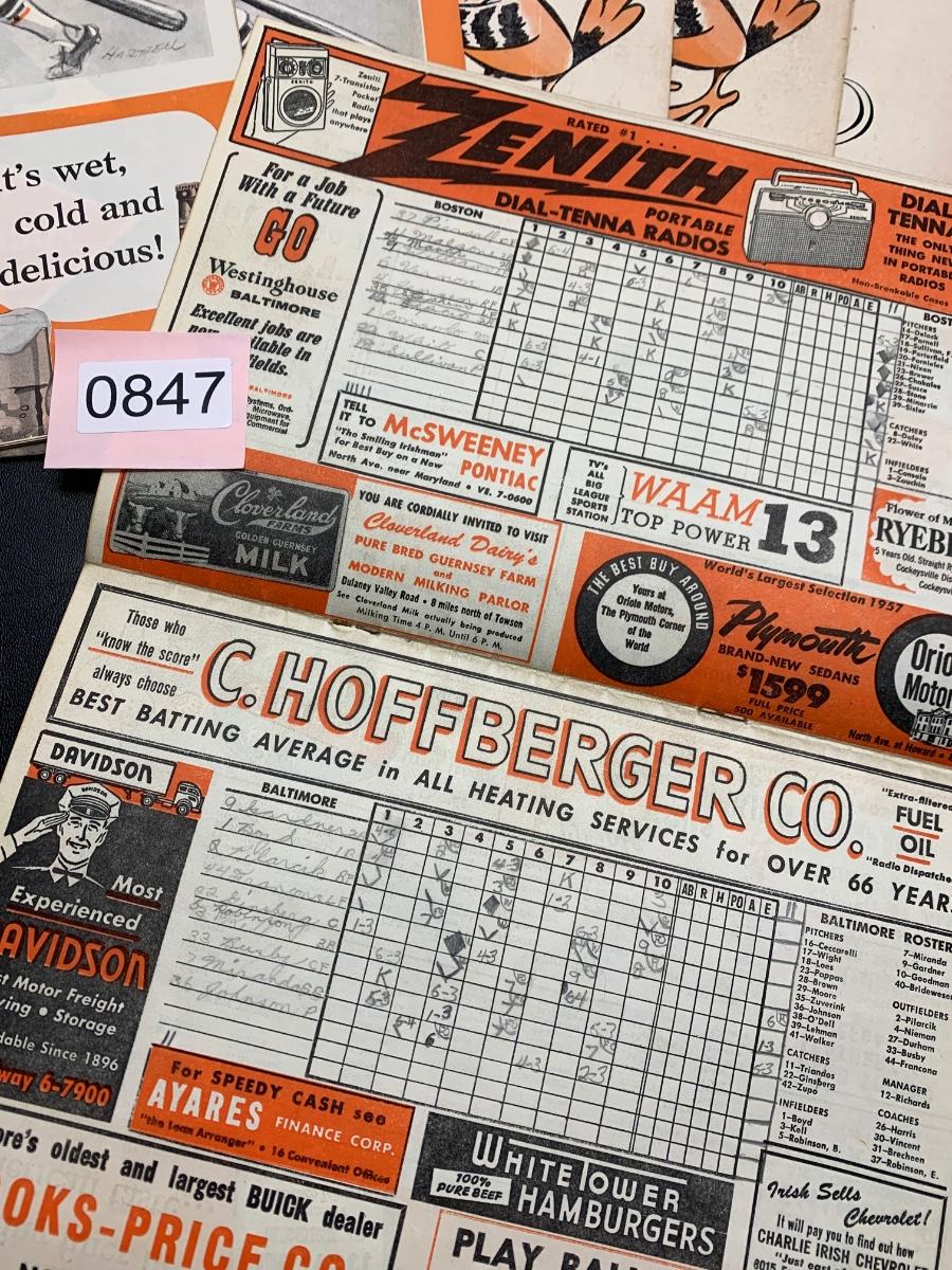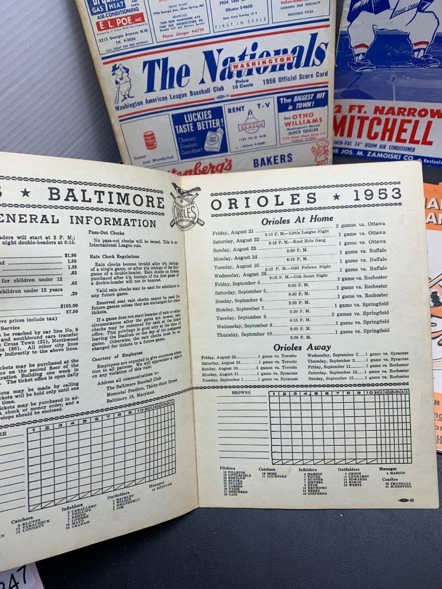 1950s Washington Senators / Baltimore Orioles Game Score Cards - Lot 847