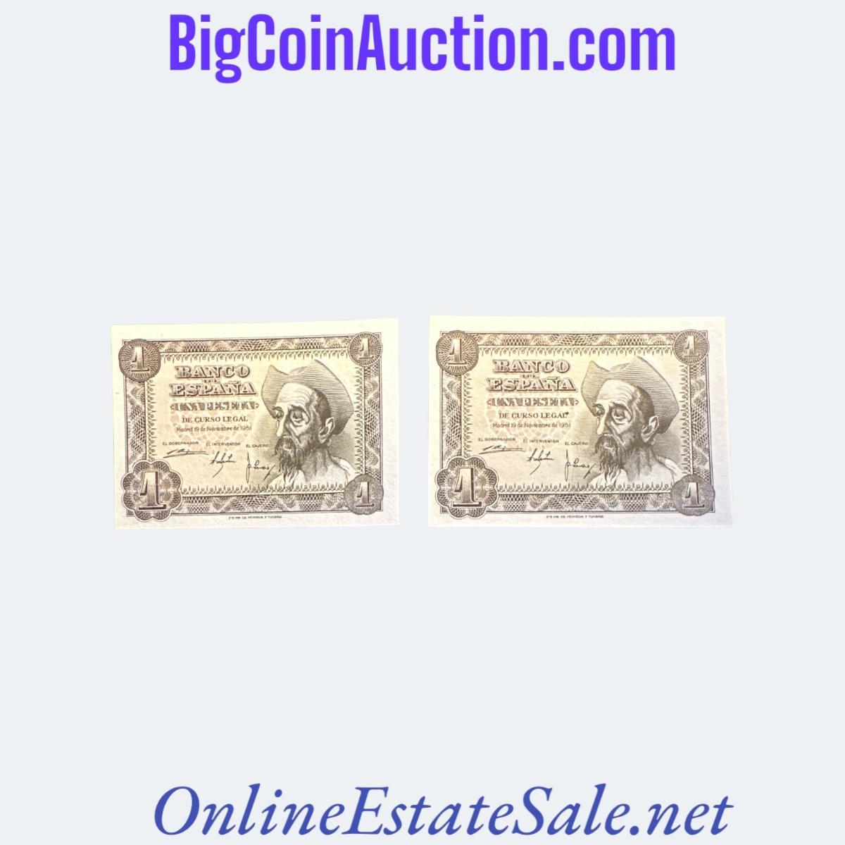 1951 SPAIN 1 PESETA - SET OF TWO CONSECUTIVE SERIAL #s