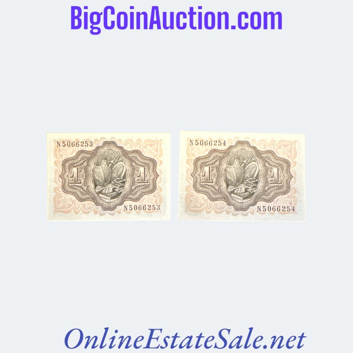 1951 SPAIN 1 PESETA - SET OF TWO CONSECUTIVE SERIAL #s