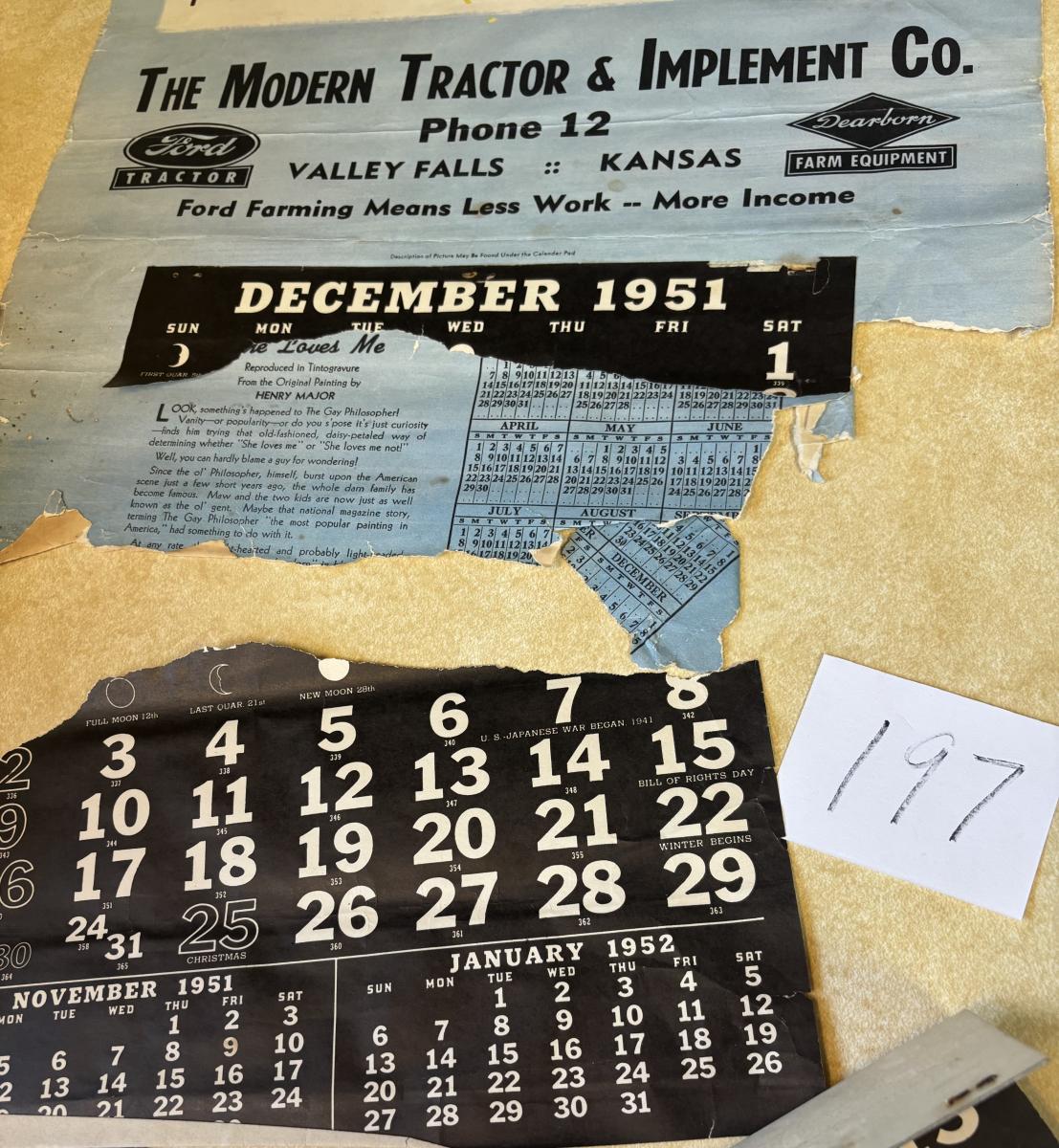 1951 Valley Falls Calender