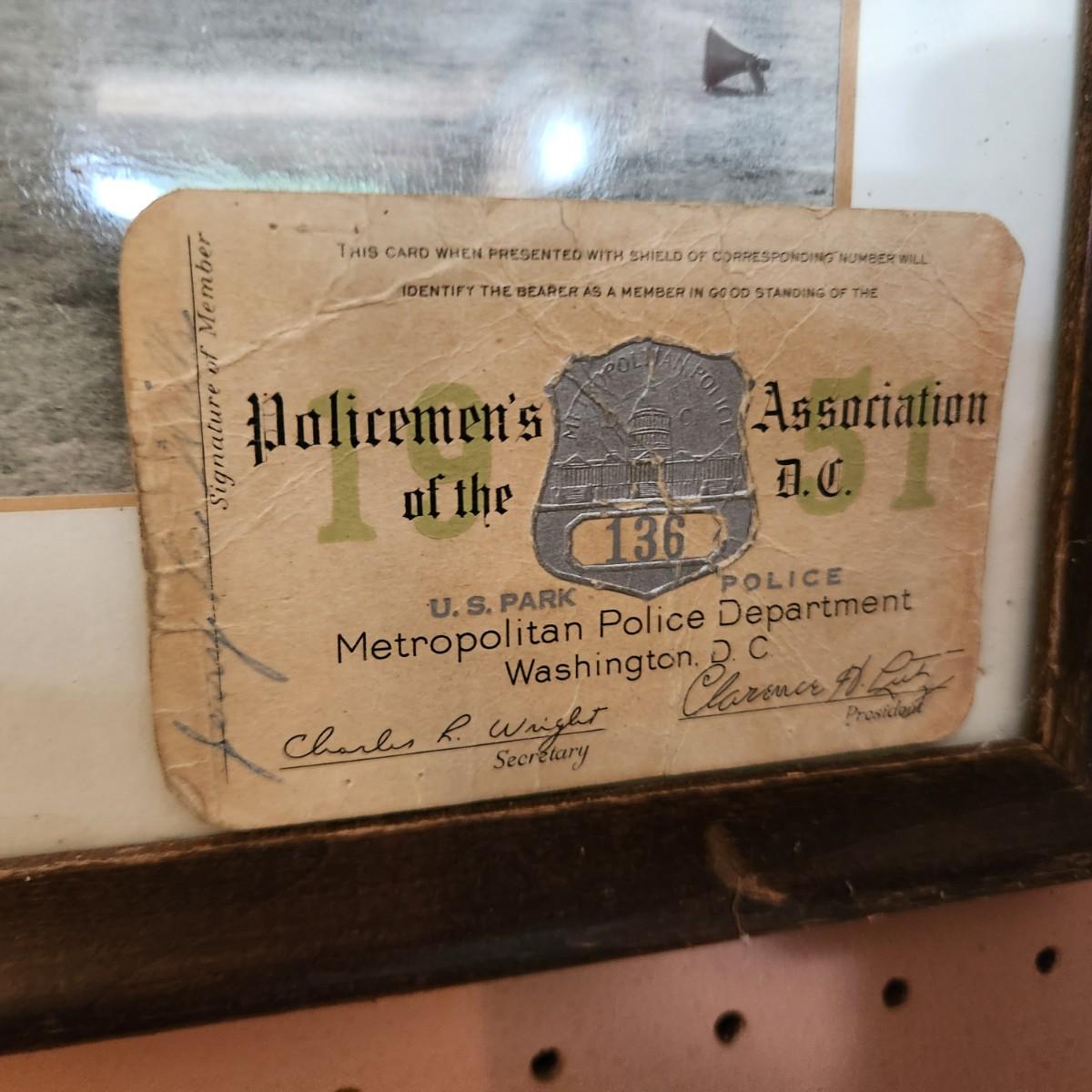 1951 United States Washington D.C. Park Police Photo Sign Membership ID Card