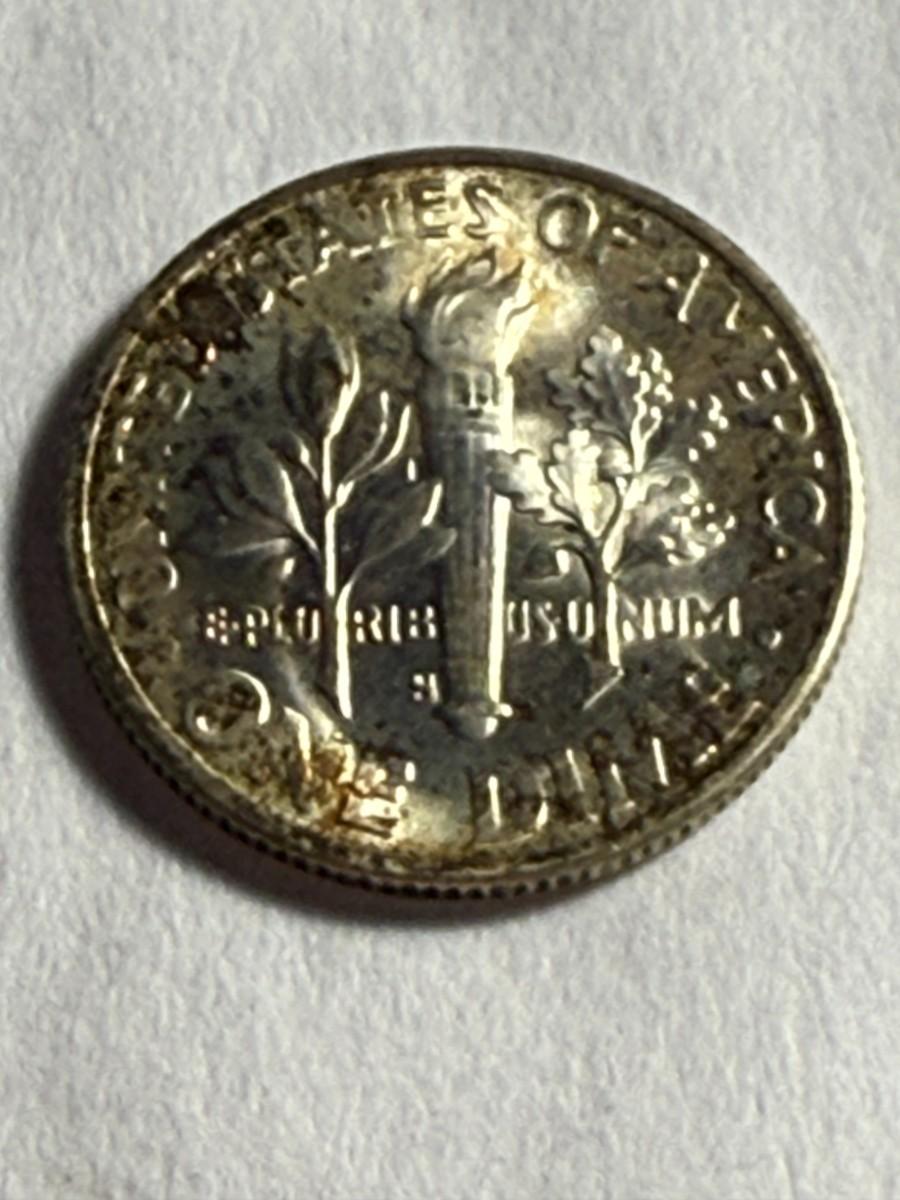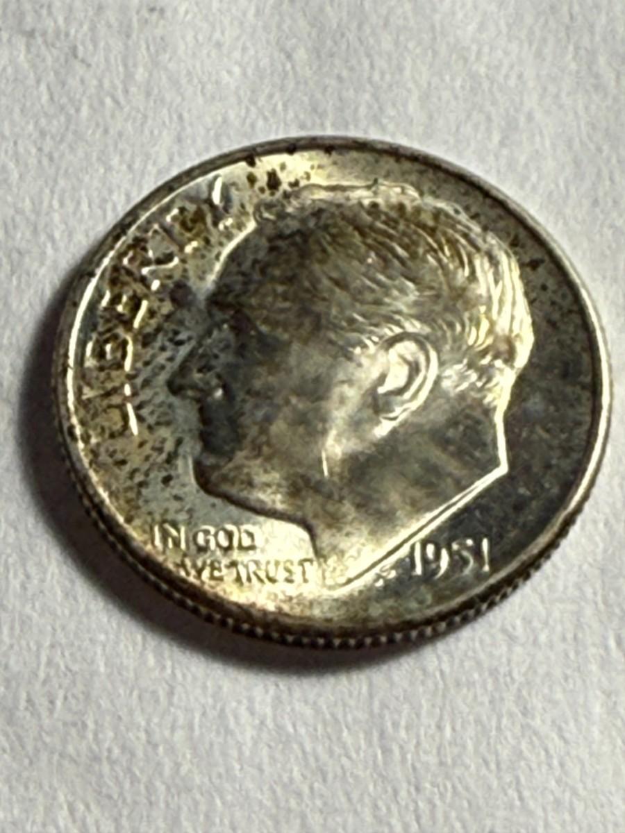 1951-S UNCIRCULATED/LIGHTLY TONED ROOSEVELT SILVER DIME AS PICTURED. $5 DOMESTIC SHIPPING.