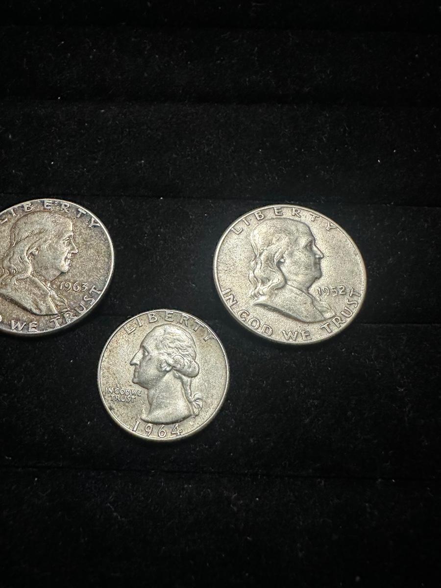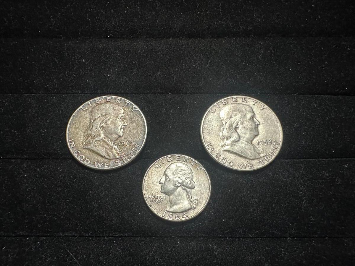 1952 & 1963 FRANKLIN HALF DOLLARS AND 1964 QUARTER
