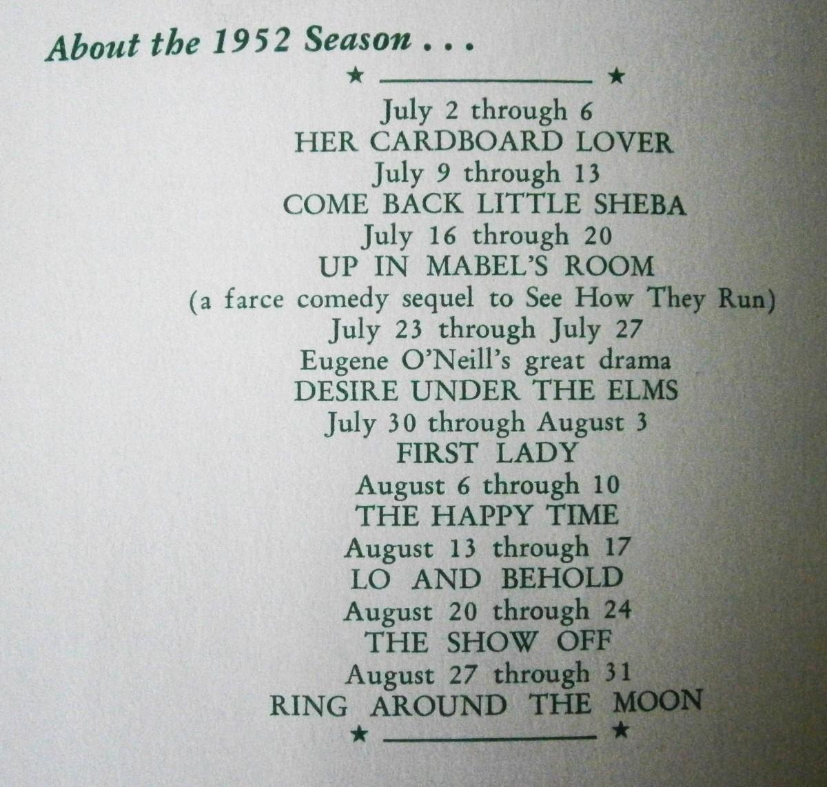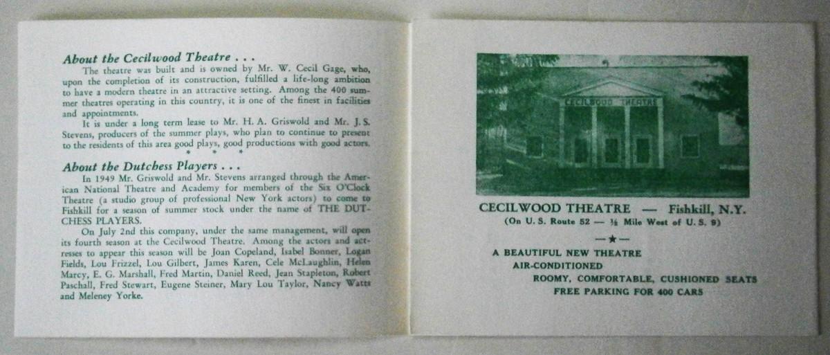 1952 CECILWOOD THEATRE Fishkill NY Summer Stock Program