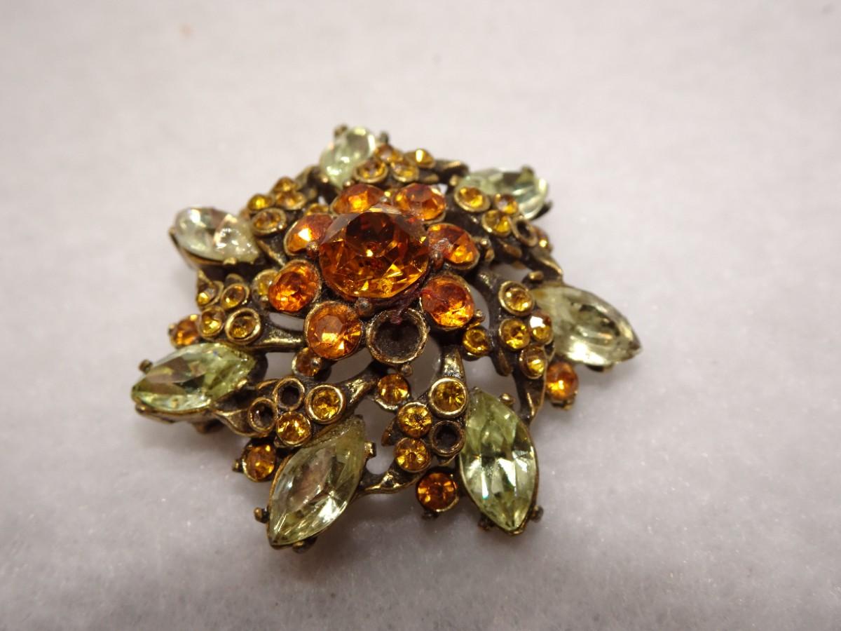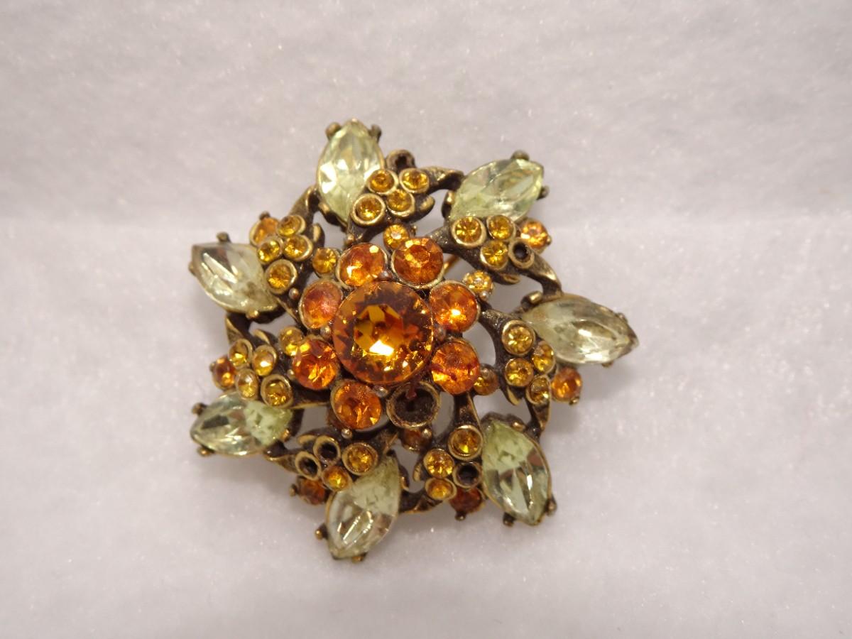 1952 Holly Craft Rhinestone Floral Brooch