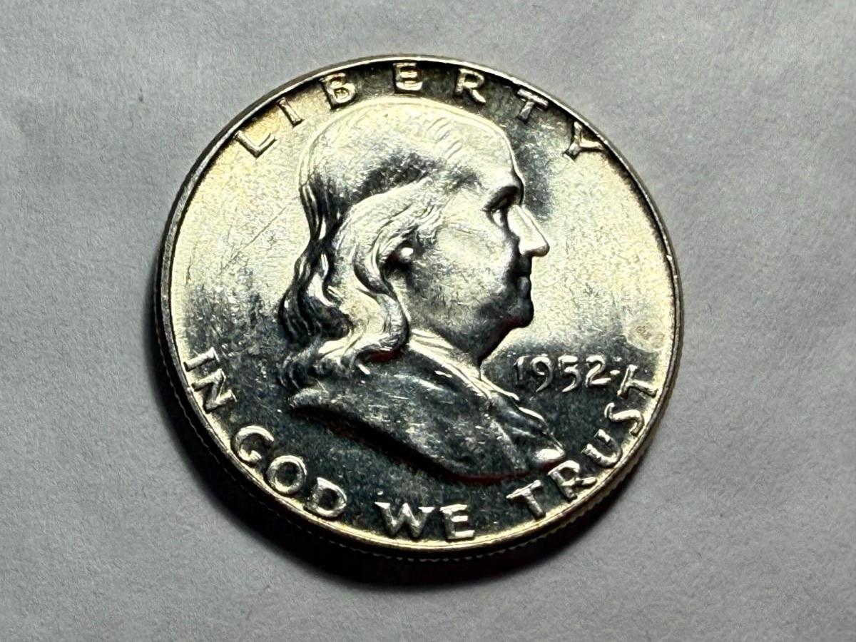 1952-P AU58/UNCIRCULATED CONDITION SILVER FRANKLIN HALF DOLLAR AS PICTURED. $5 DOMESTIC SHIPPING.