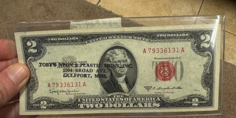 1953 C Advertising Bill 2$ Gulfport MS plus off center extremely rare