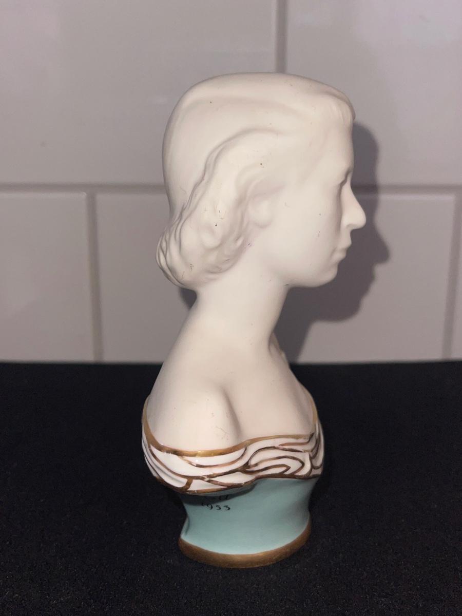 1953 Coronation Souvenir Bust of Queen Elizabeth II, English Foley Bone