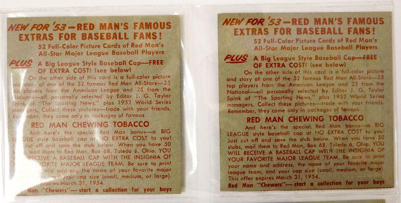 1953 Red Man Tobacco Baseball Cards #12 Gene Woodling #8 Sal Maglie