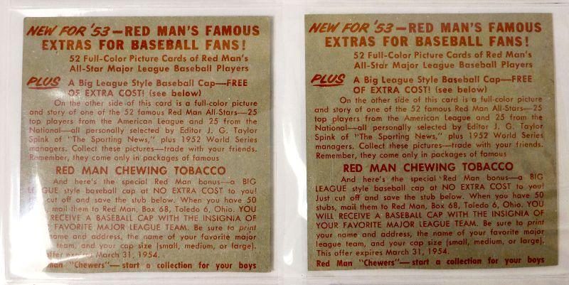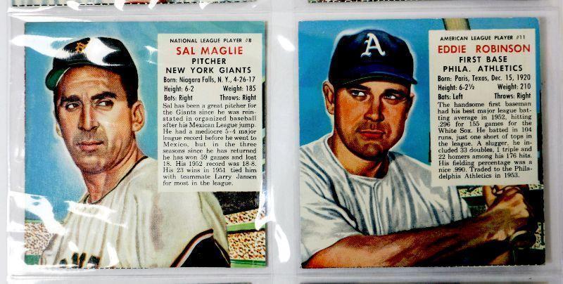 1953 Red Man Tobacco Baseball Cards #8 Sal Maglie #11 Eddie Robinson