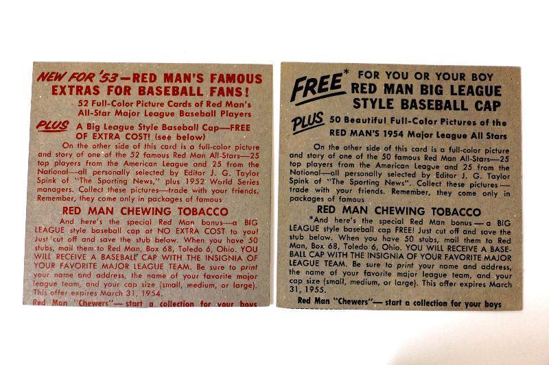 1953/54 Red Man Tobacco Baseball Cards Bobby Adams #2 Sam Mele #6