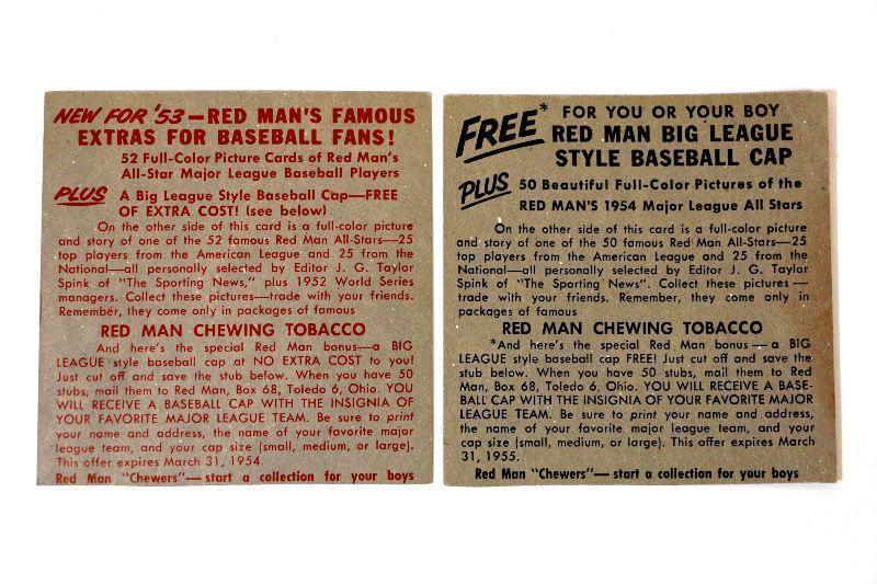 1953/54 Red Man Tobacco Baseball Cards Jackie Jensen #6 Lew Burdette #24