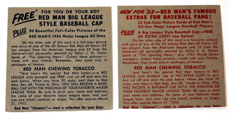 1953/54 Red Man Tobacco Baseball Cards Bobby Adams #2 Sam Mele #6