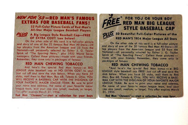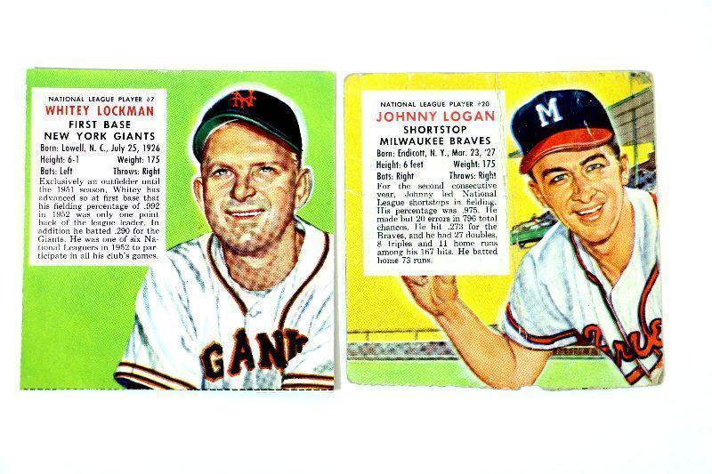1953/54 Red Man Tobacco Baseball Cards Whitey Lockman #7 Johnny Logan #20