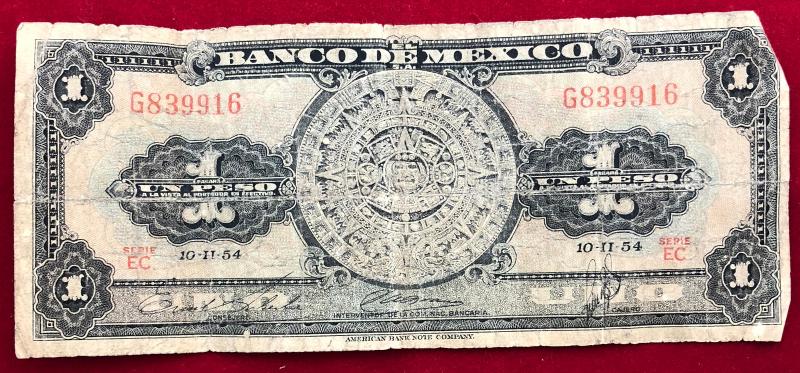 1954 Mexican Peso Note UN Peso Bill