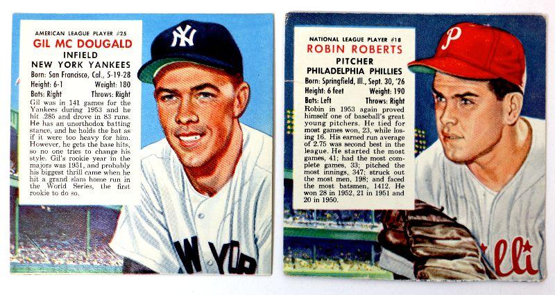 1954 Red Man Tobacco Baseball Cards #25 Gil MC Dougald #18 Robin Roberts