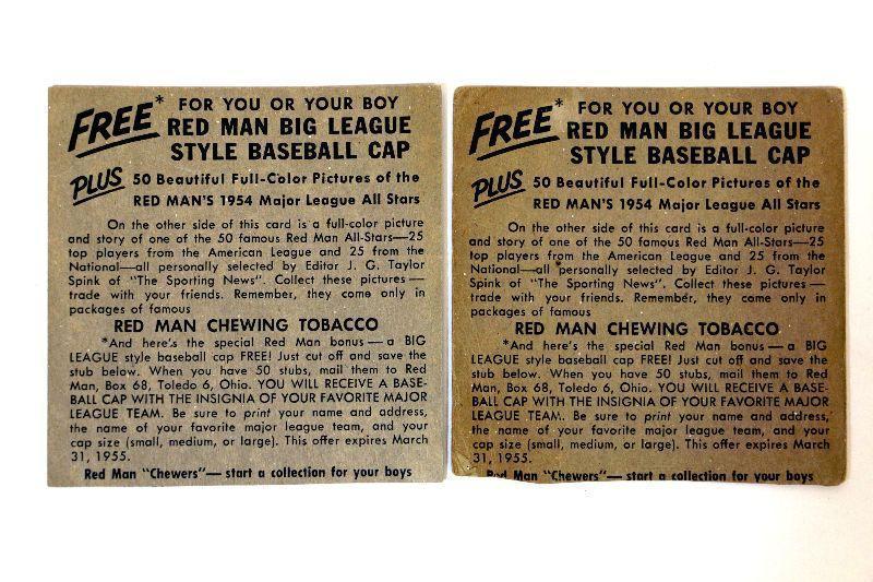1954 Red Man Tobacco Baseball Cards Don Mueller #7 Ferris Fain #22