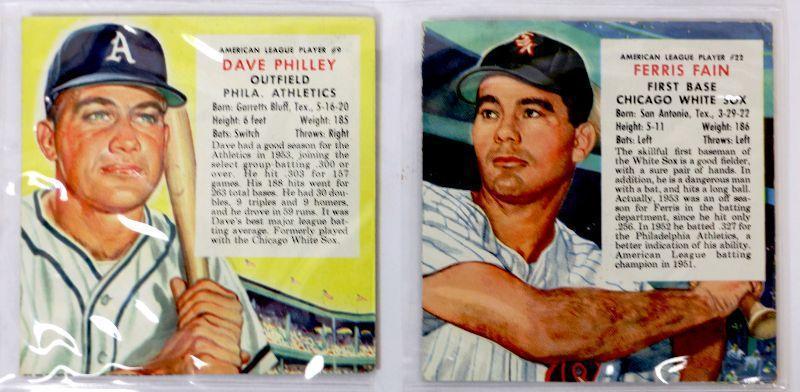 1954 Red Man Tobacco Baseball Cards #9 Dave Philley #22 Ferris Fain