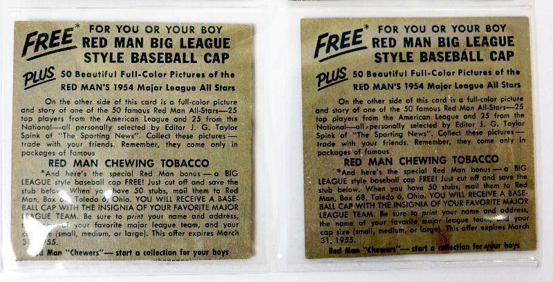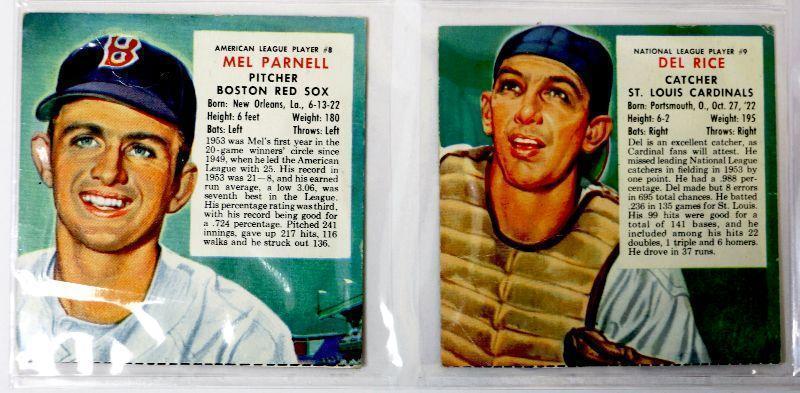1954 Red Man Tobacco Baseball Cards #8 Mel Parnell #9 Del Rice