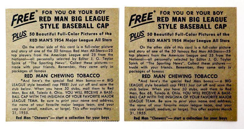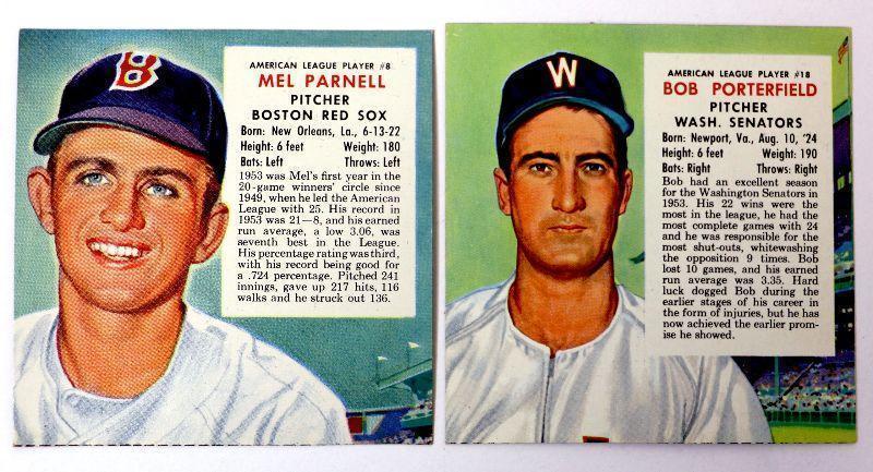 1954 Red Man Tobacco Baseball Cards #8 Mel Parnell #18 Bob Porterfield