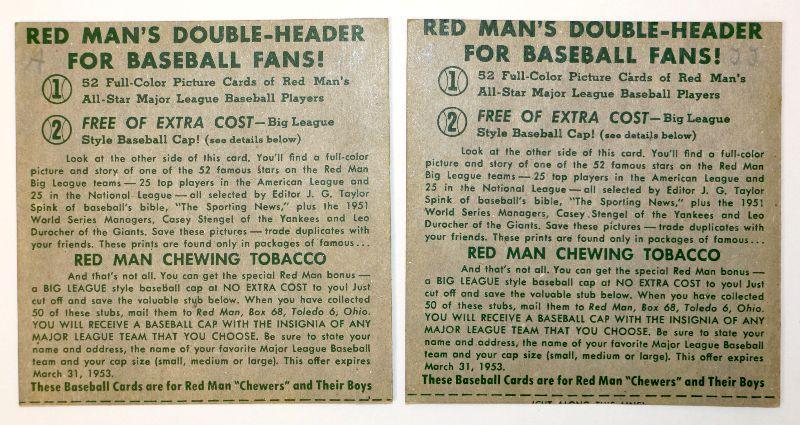 1954 Red Man Tobacco Baseball Cards - Johnny Groth + Vic Wertz
