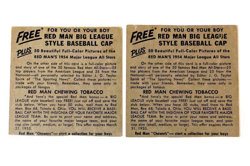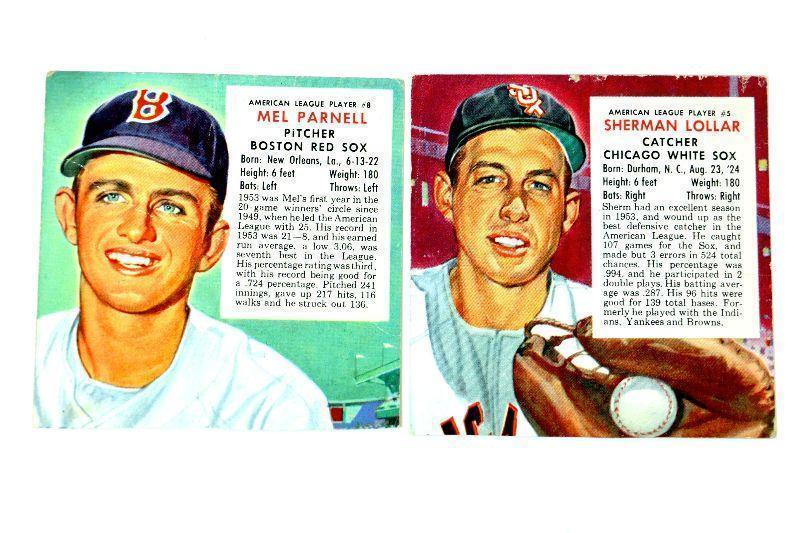1954 Red Man Tobacco Baseball Cards Mel Parnell #8 Sherman Lollar #5