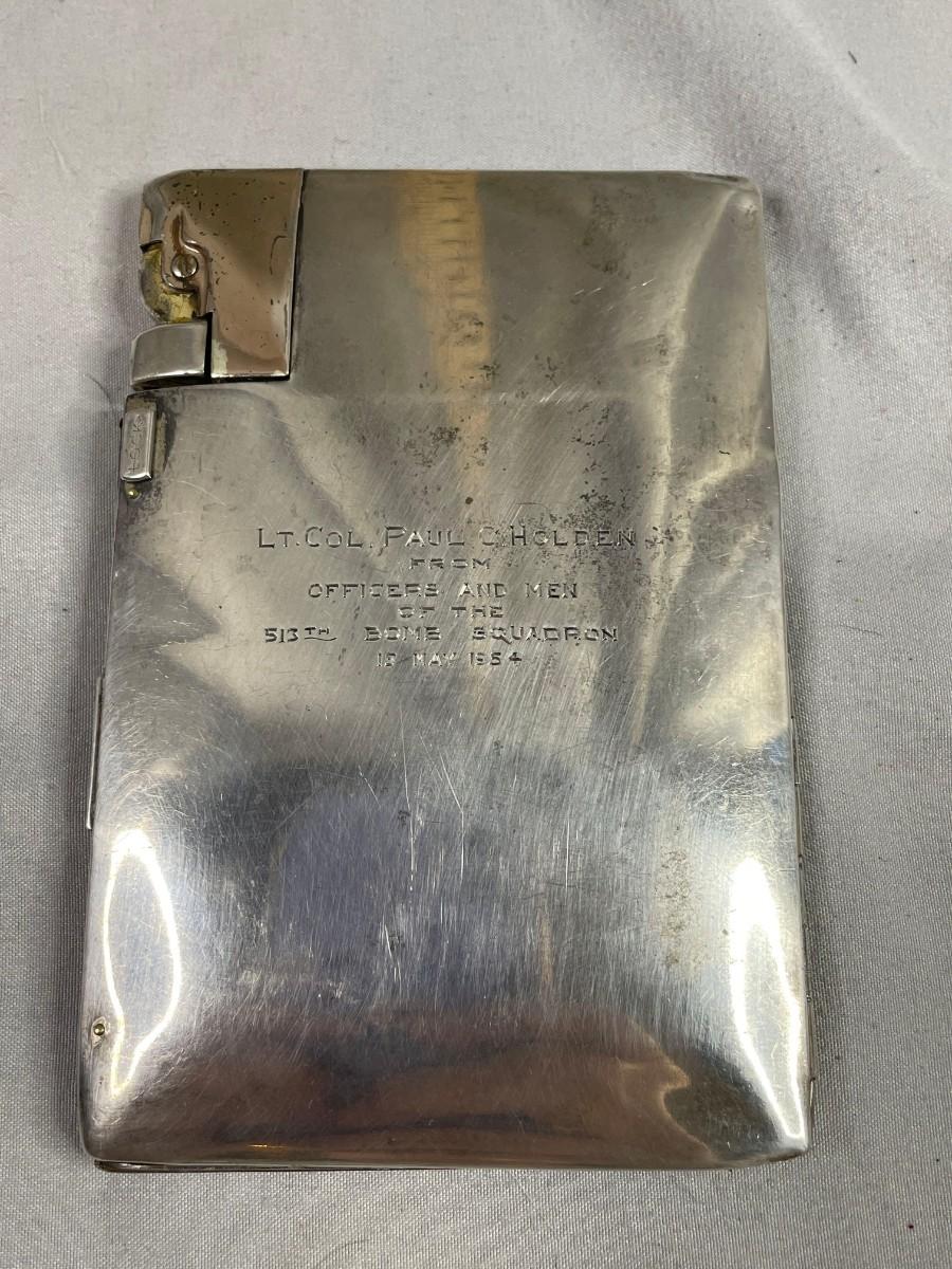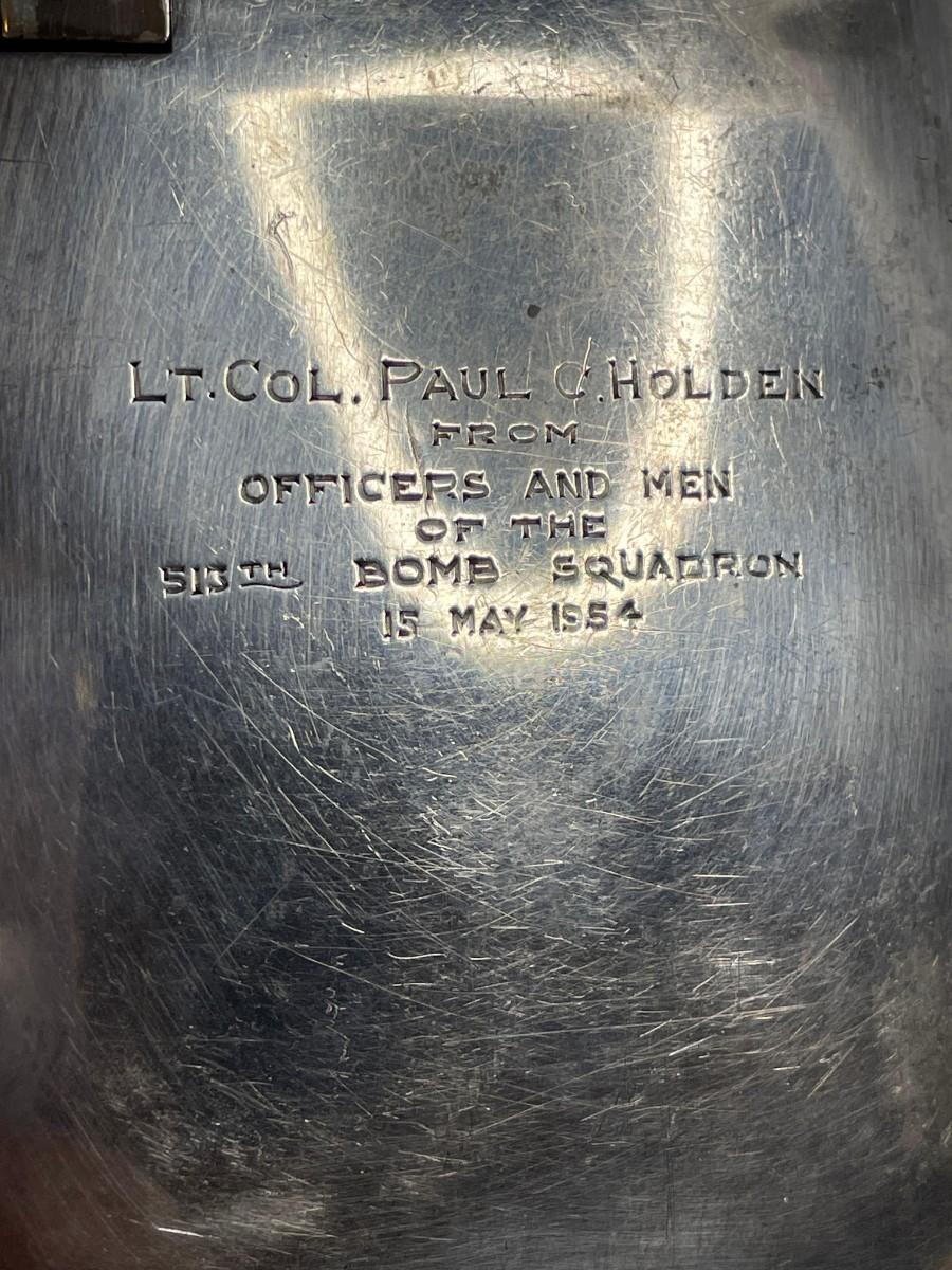 This was a gift engraved with an H on the front and Lt. Col. Paul C Holden From Officers and Men of the 513th Dome Squadron 15 May 1954.<br />
