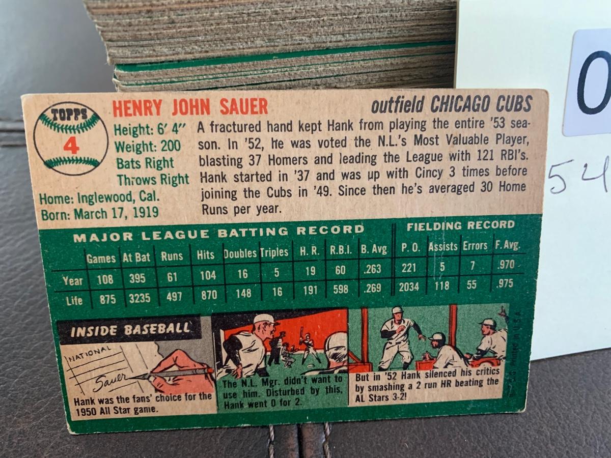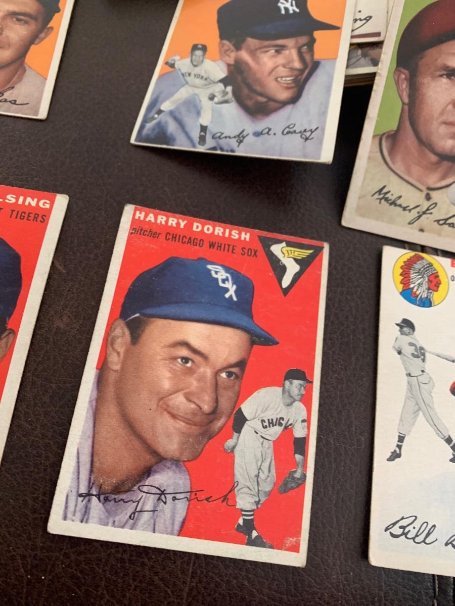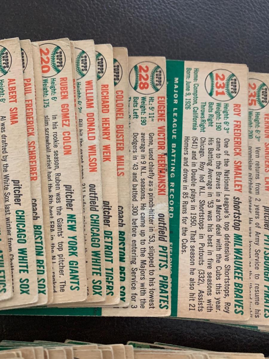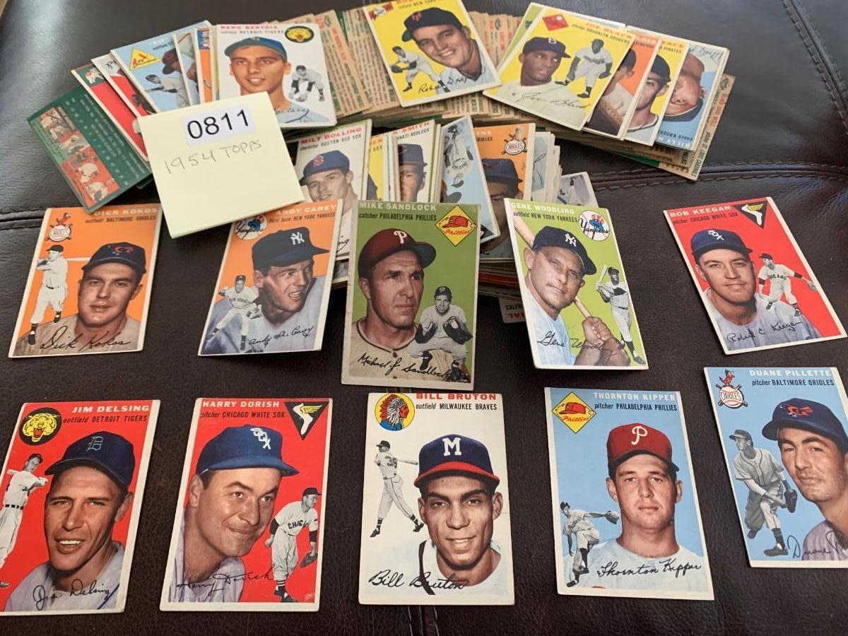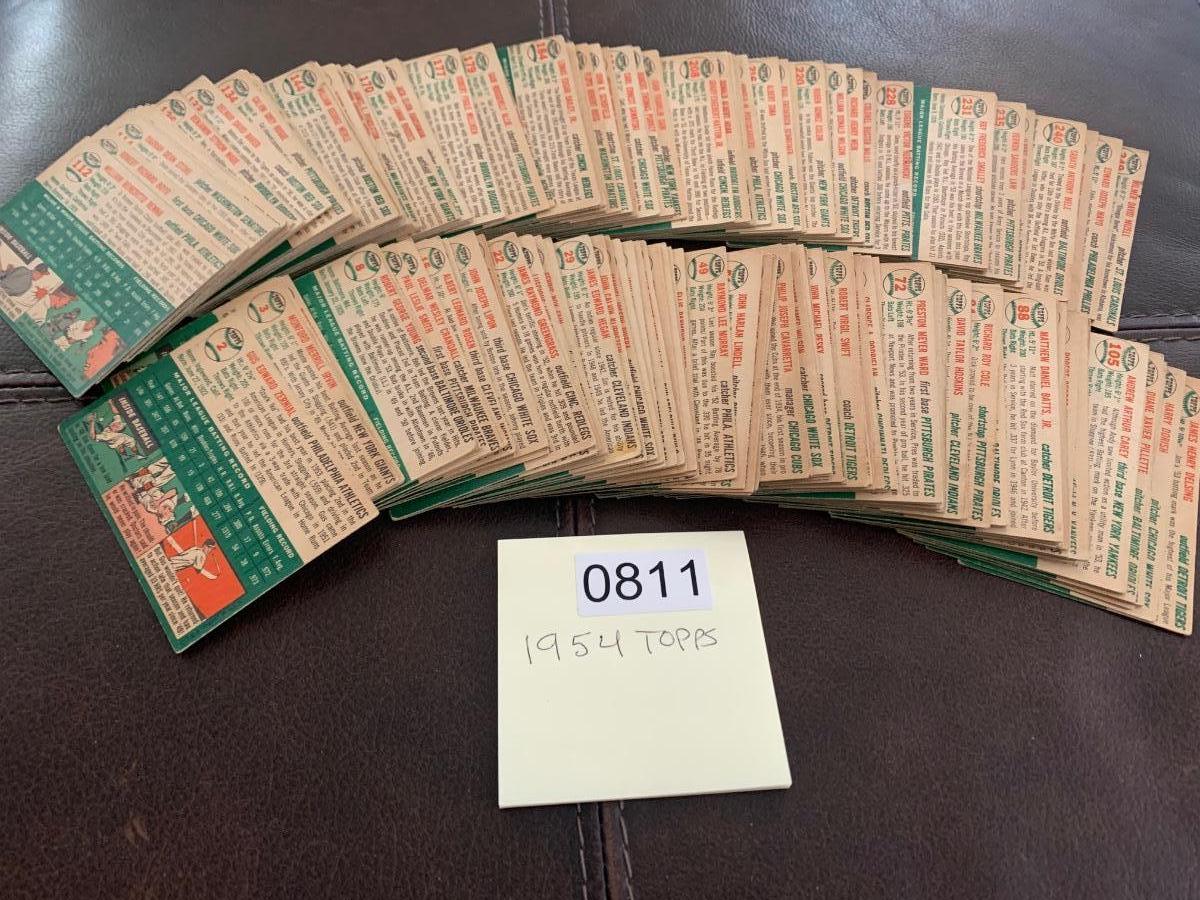 Nice near run of 1954 Topps but absent of the “key cards”. All are in good but definitely not mint condition.